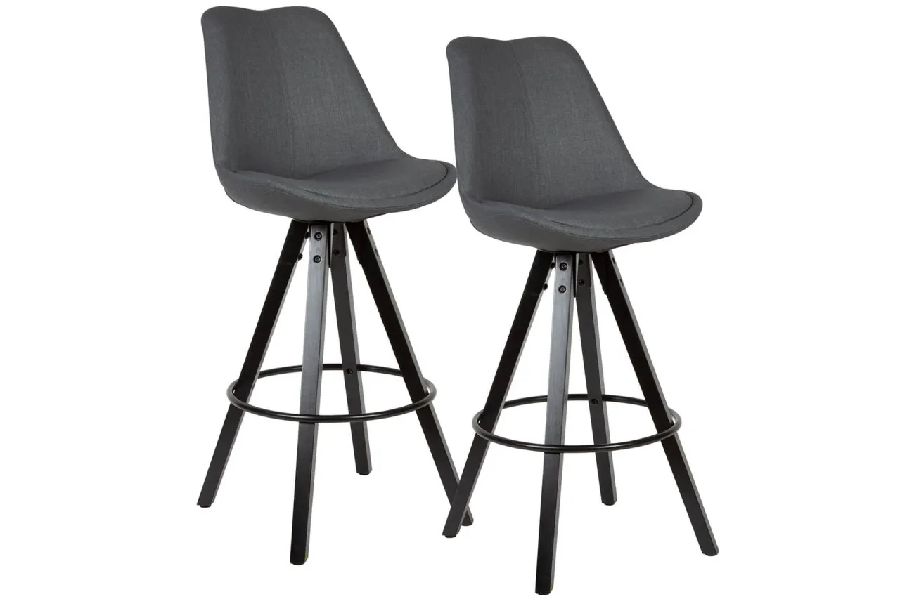 tinkaro 2er-Set Barstühle TRUDI Stoff 012419 Barhocker Tresenhocker Anthrazit
