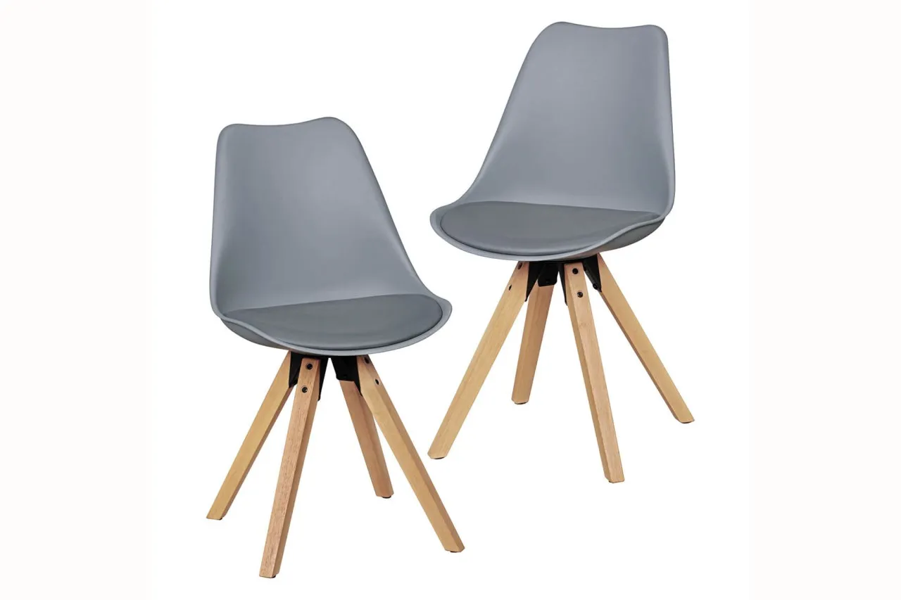 tinkaro 2er-Set Esszimmerstuhl HALIFE Kunstleder/Hevea Massivholz 012657 Polsterstuhl Küchenstühle Grau
