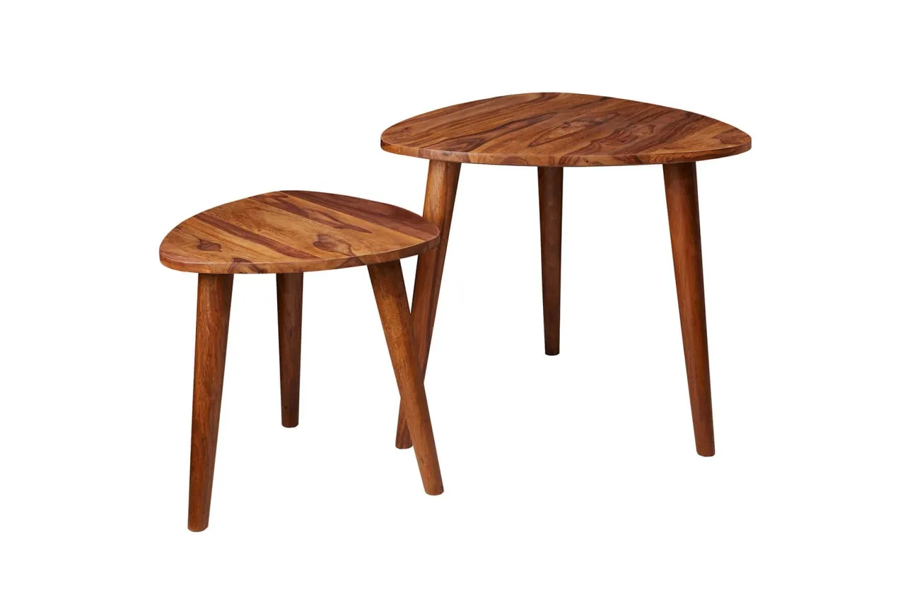 tinkaro dreieckiger 2er Set Satztische AGATHA Sheesham Massivholz 012248 Sofatische Beistelltische 2er Set Braun