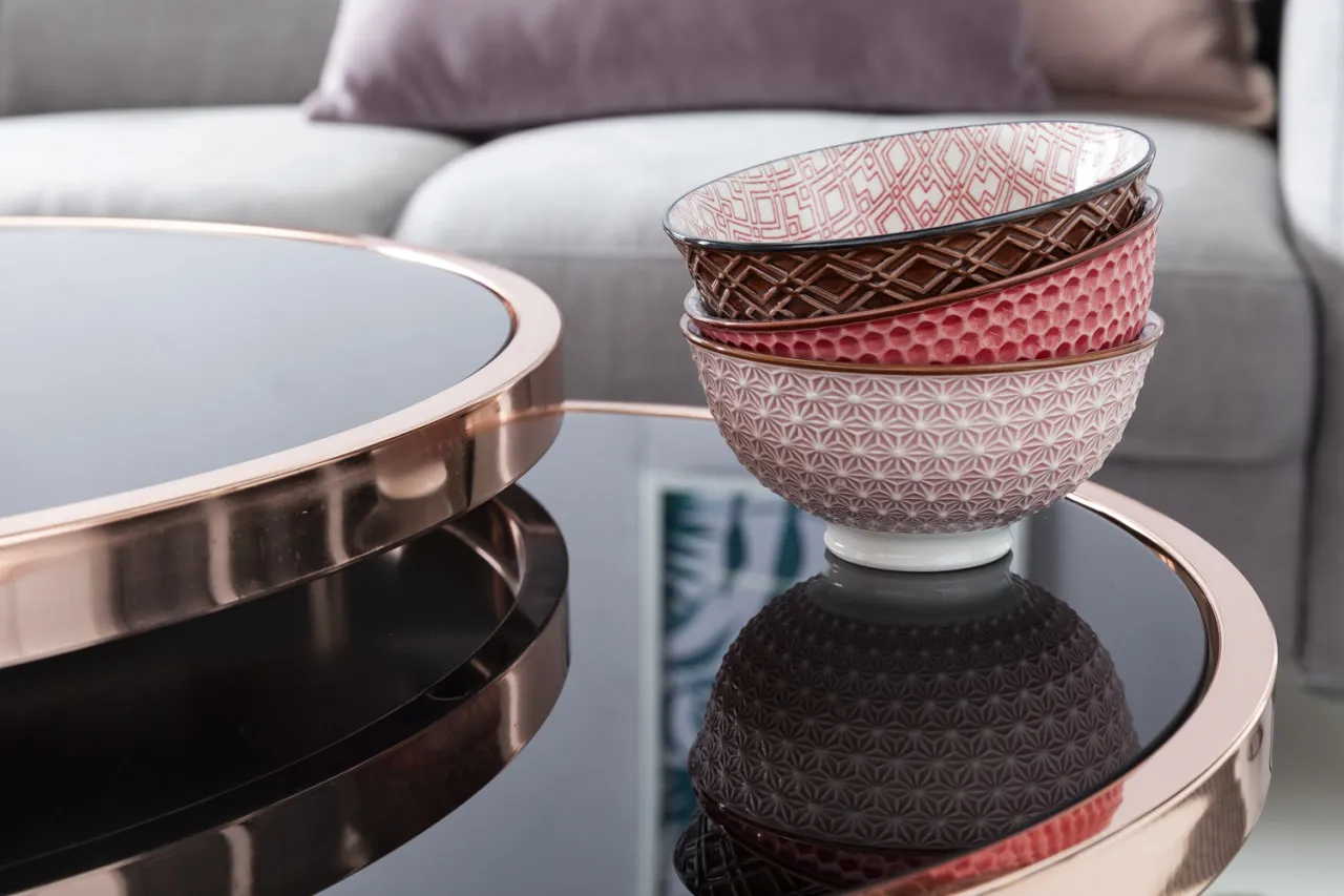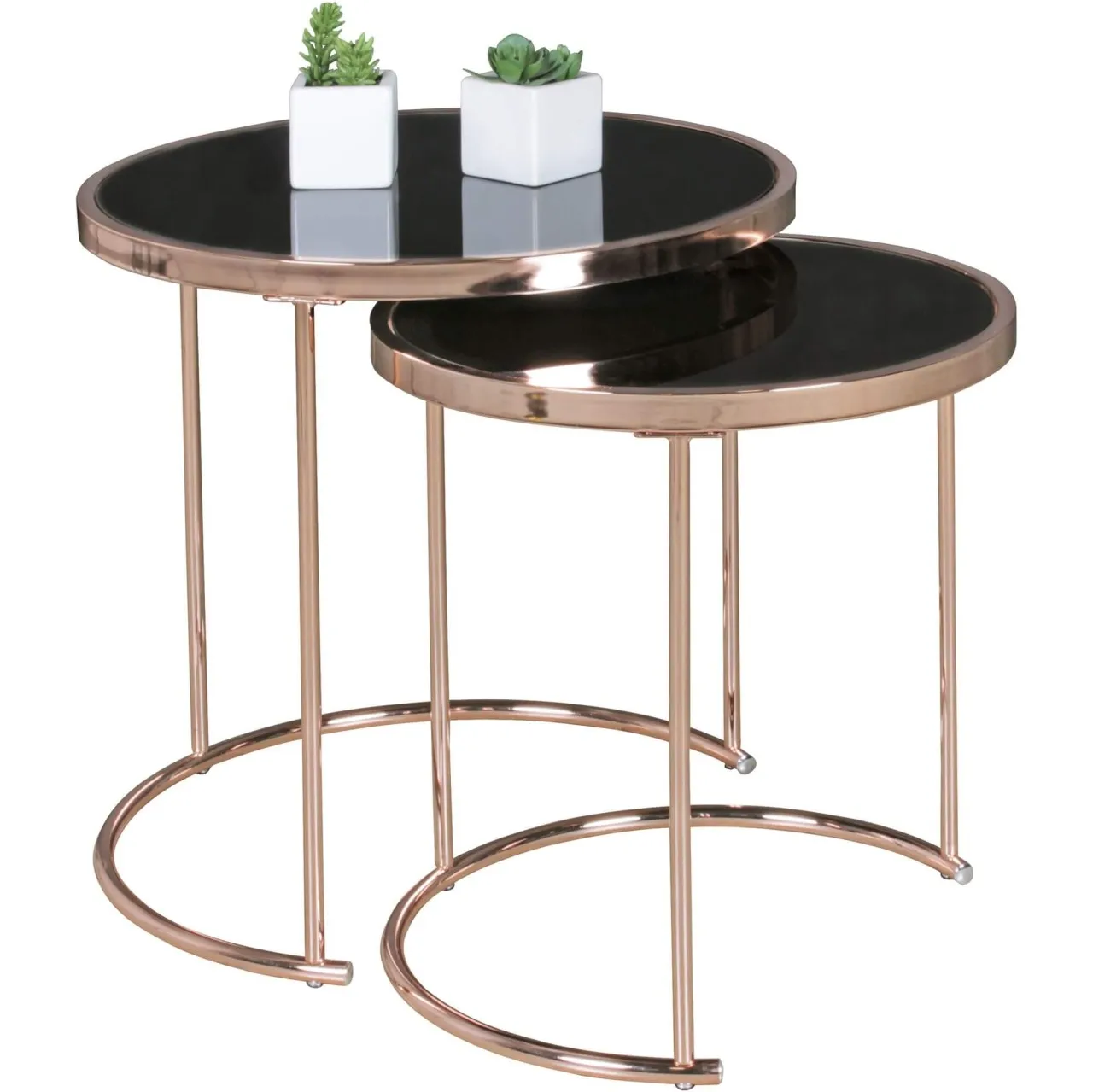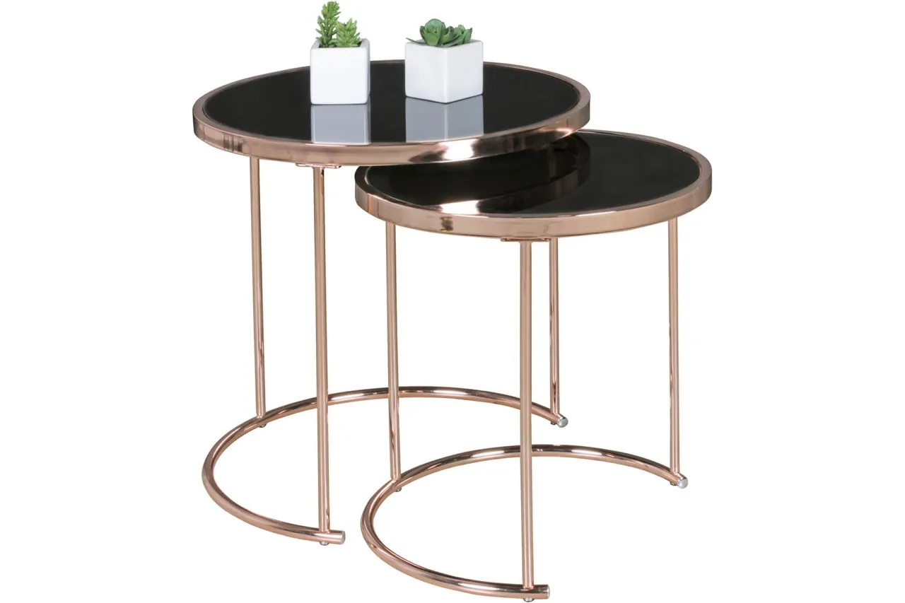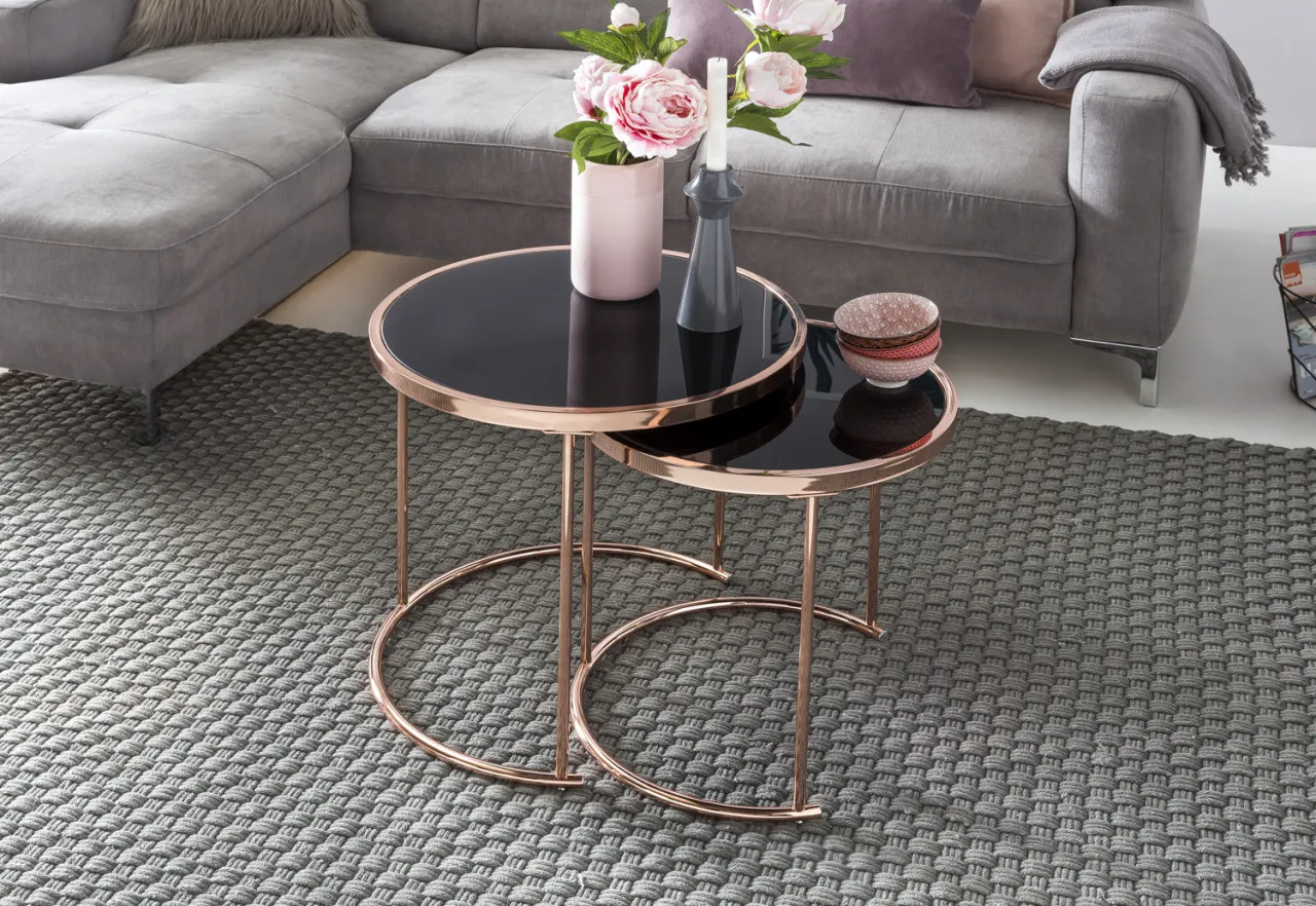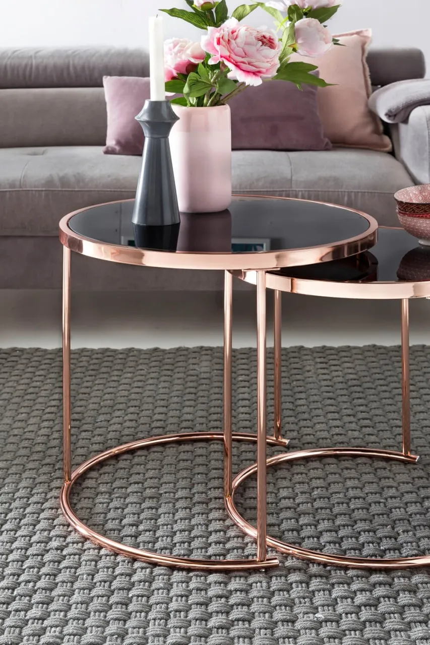 tinkaro 2er-Set Satztisch ULF Glas Beistelltisch Schwarz / Kupfer