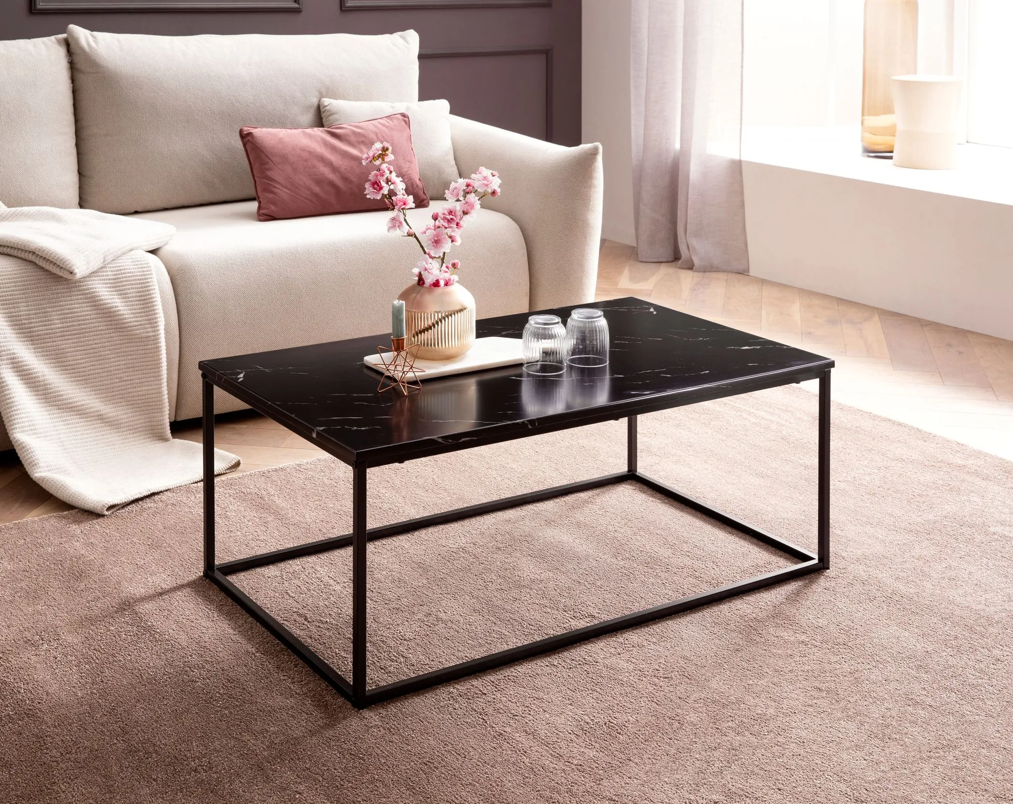 - Farbe: Tischplatte: Schwarz (Marmor-Hochglanz-Optik) / Gestell: Schwarz (matt)