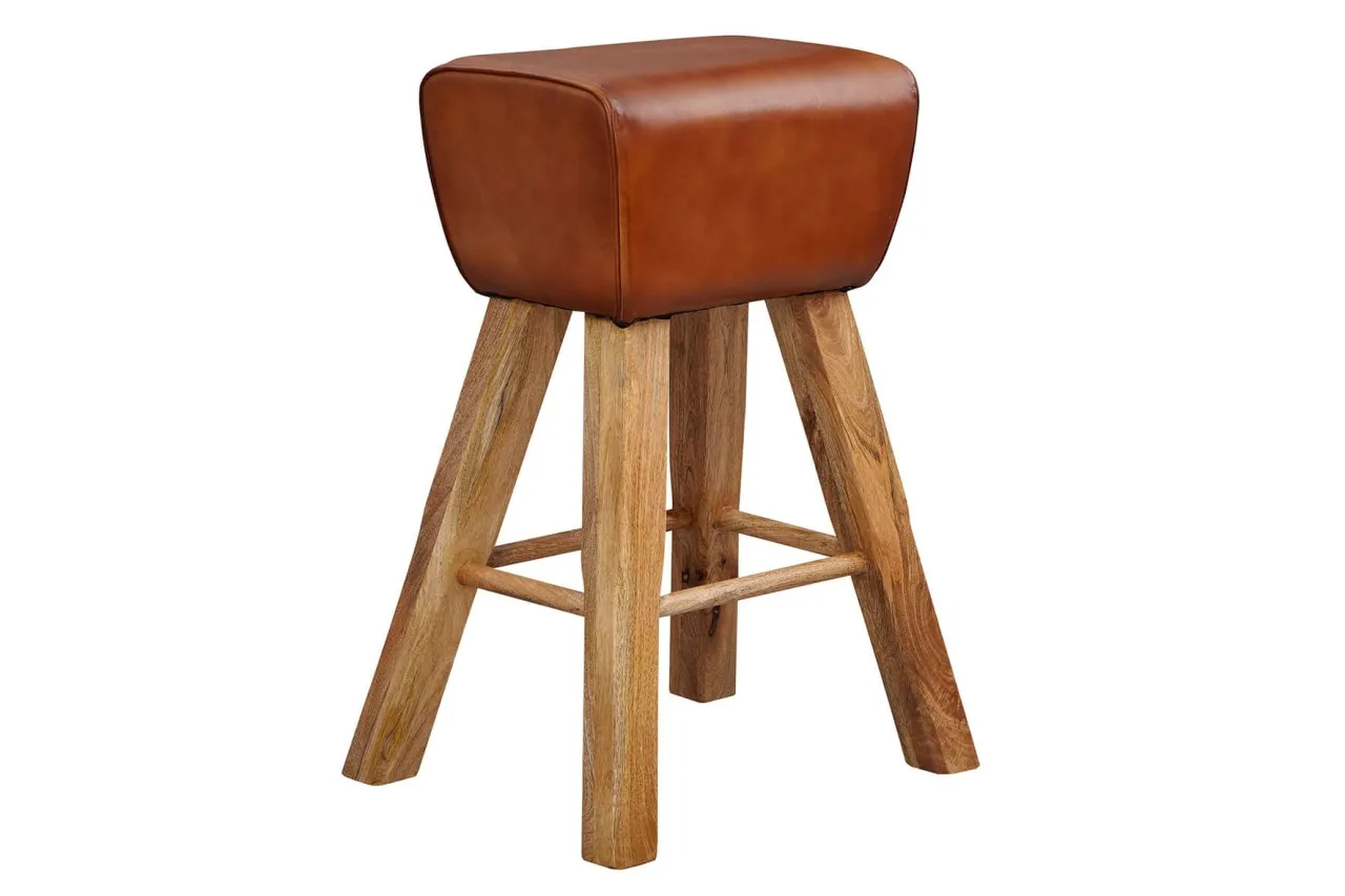 tinkaro eckiger Barhocker AKUA Mango Massivholz / Echtleder 012334 Turnbock Tresenhocker Braun