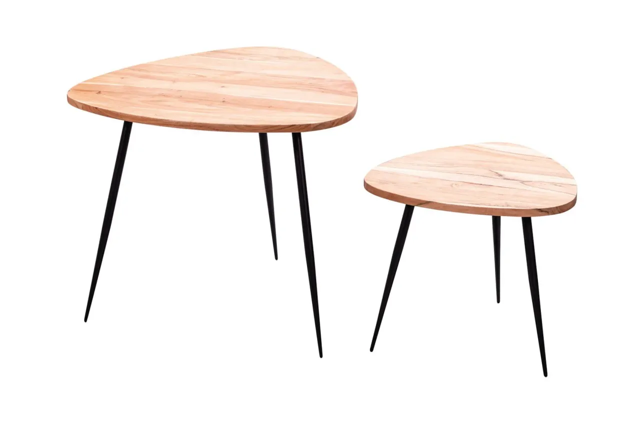 Schönes Beistelltisch Set aus Holz und Metall Sofatisch aus Akazienholz von tinkaro