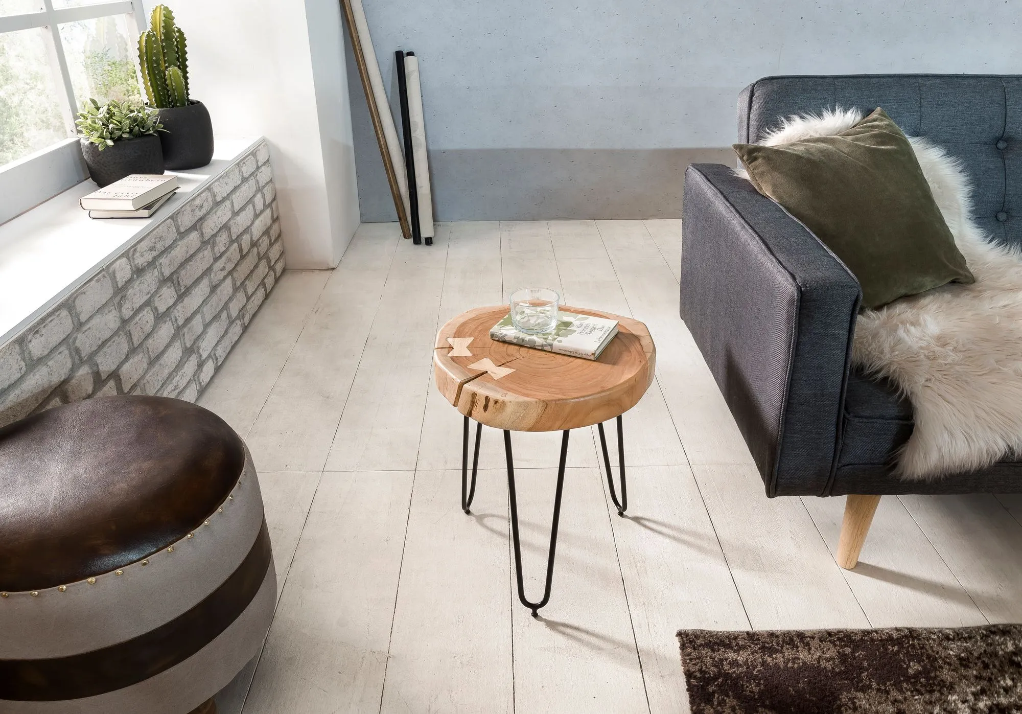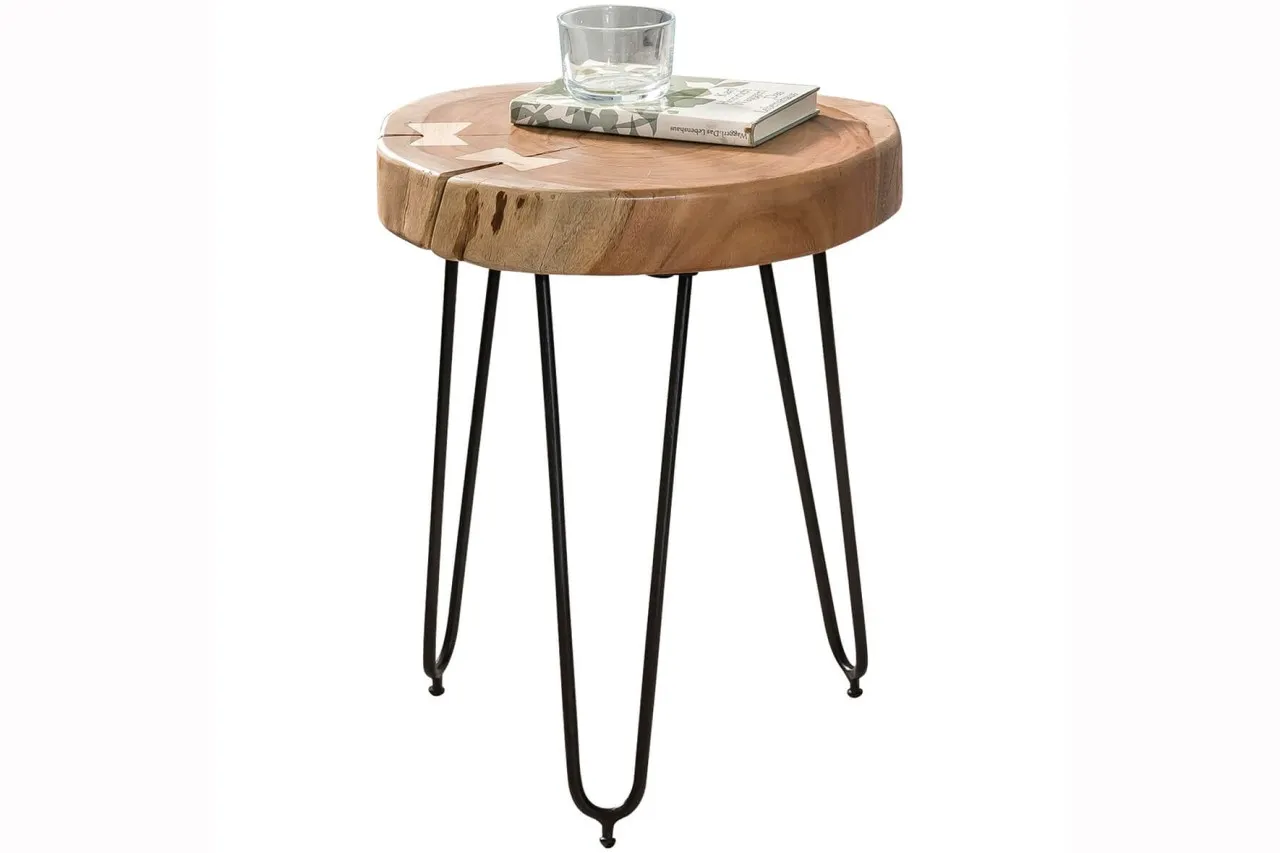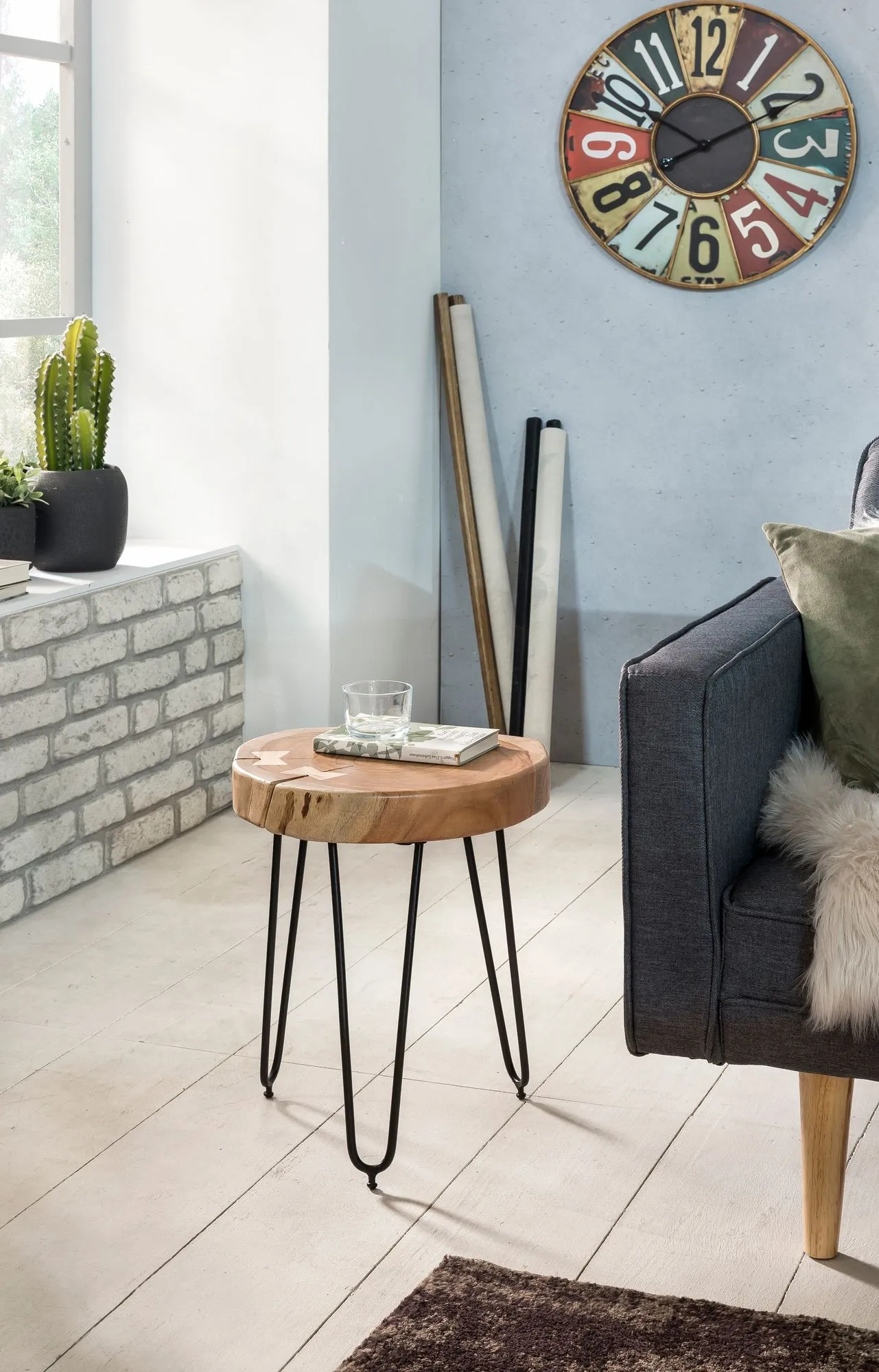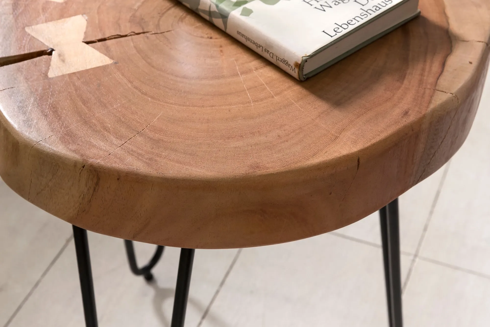 tinkaro runder Beistelltisch BORAKE Massivholz Akazie 012814 Sofatisch kleine Konsole Braun