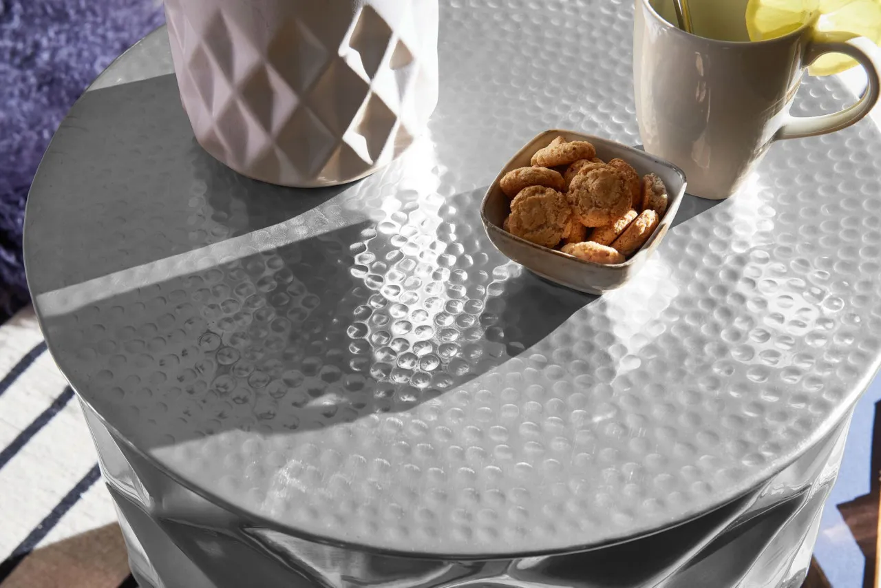 - Hammerschlag-Strukturen machen den Tisch zu einem absoluten Hingucker
