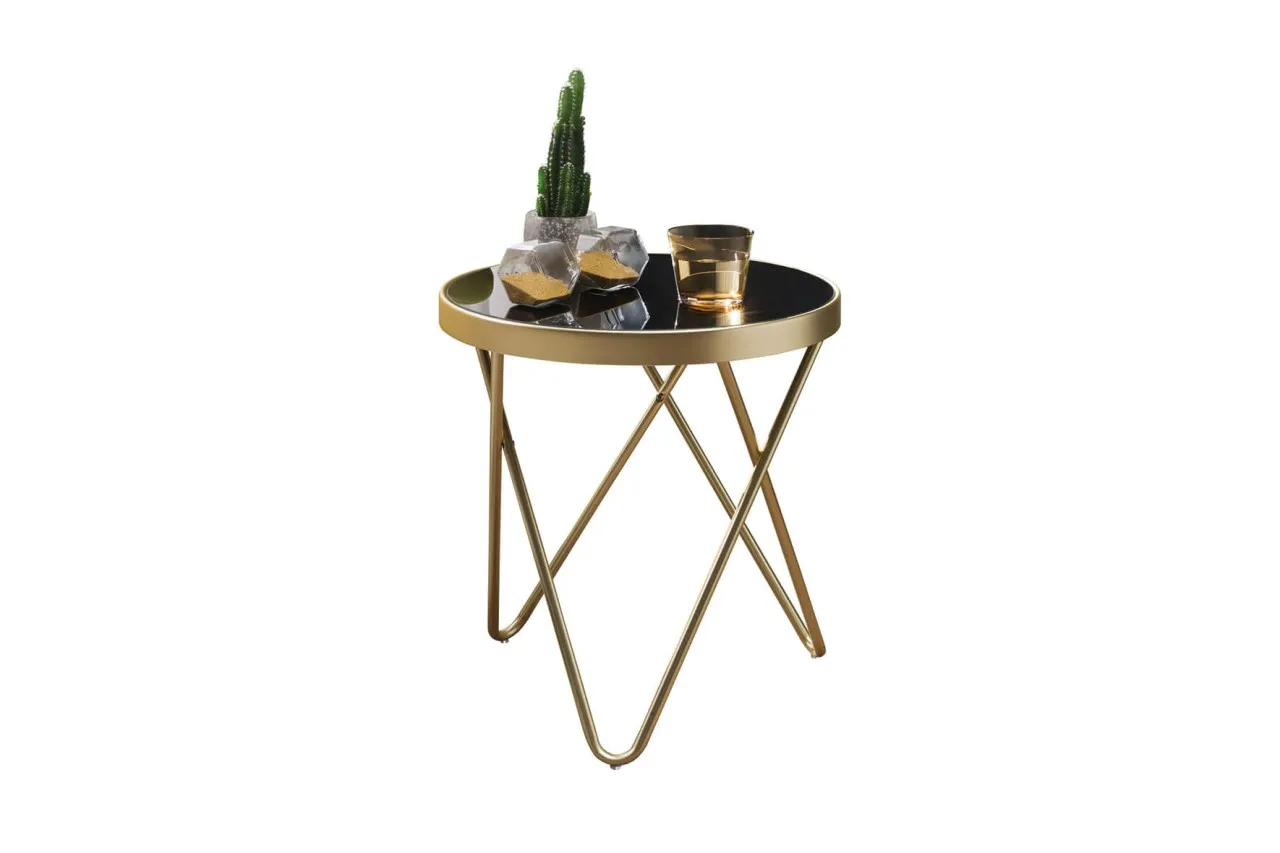 tinkaro Beistelltisch rund AYLA Couchtisch rund Glas Schwarz Gold kleiner Sofatisch