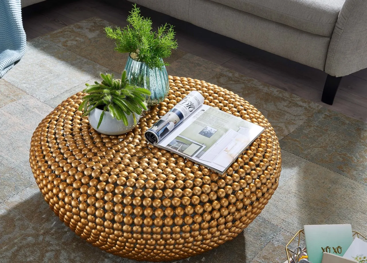 tinkaro Beistelltisch rund MONJA Aluminium Wohnzimmertisch Gold