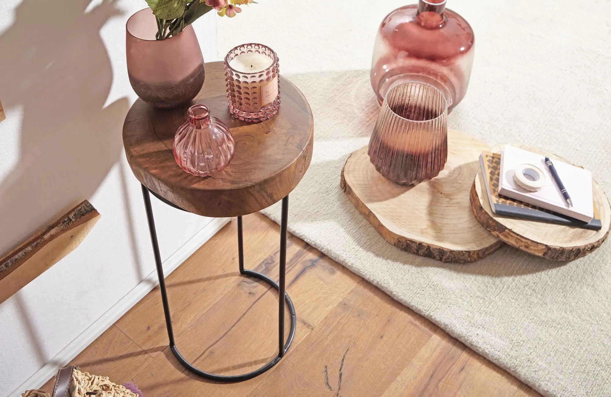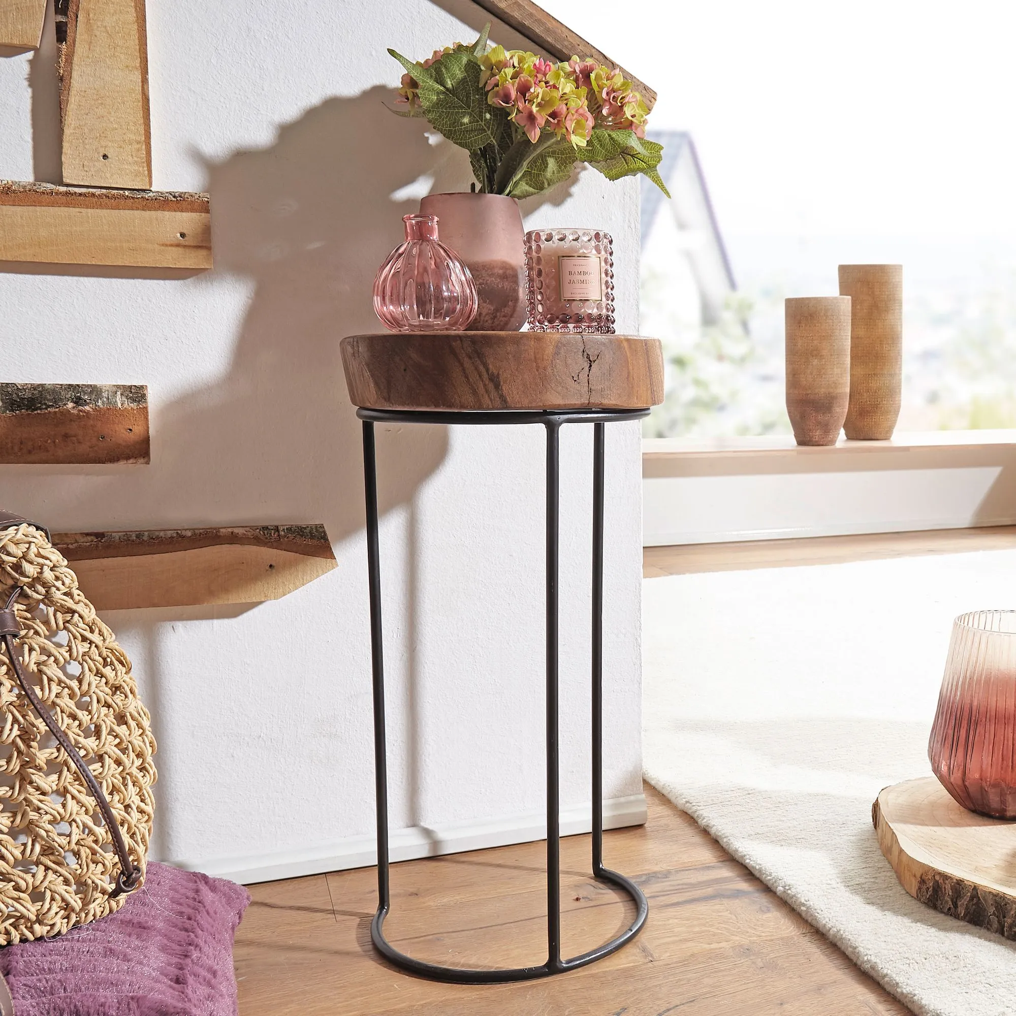 tinkaro Beistelltisch rund OTTMAR Massiv-Holz Sheesham Wohnzimmer-Tisch Braun