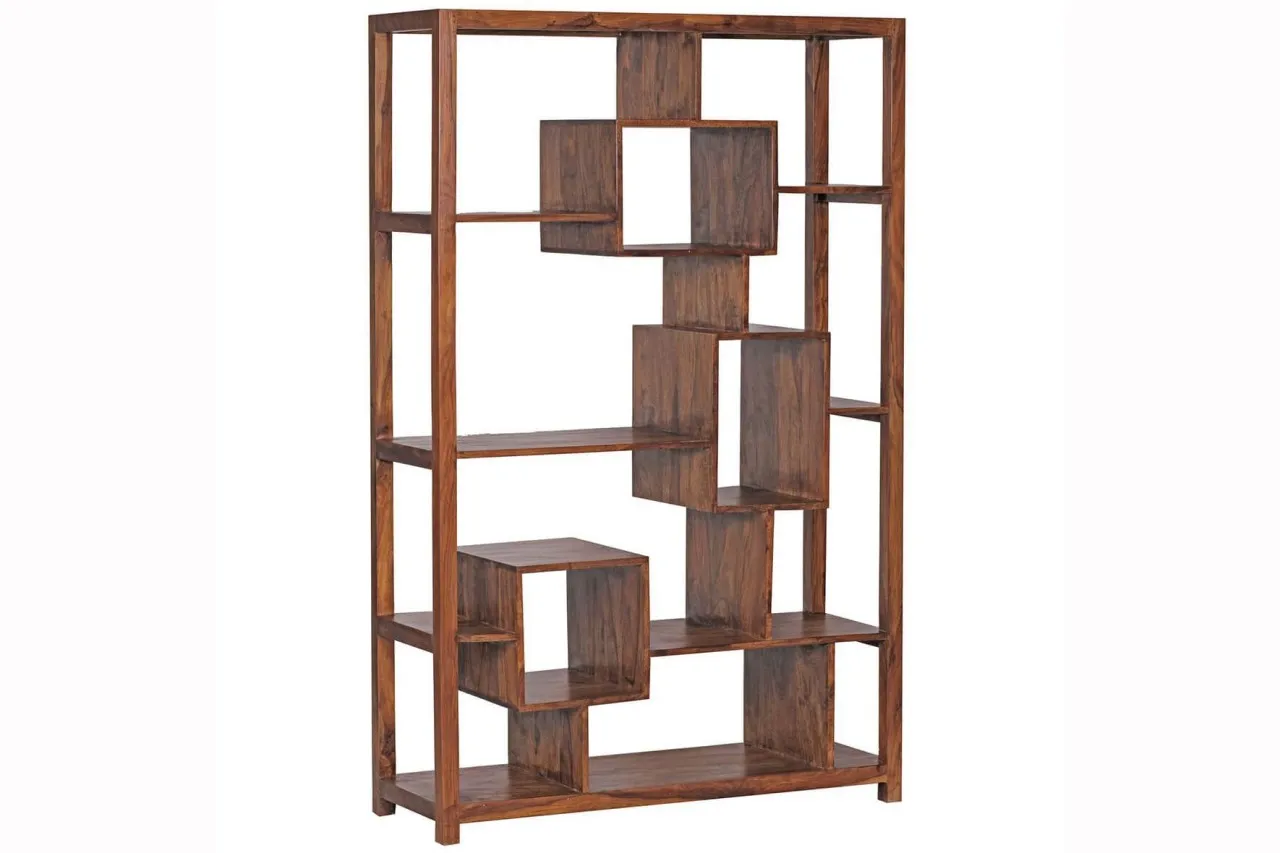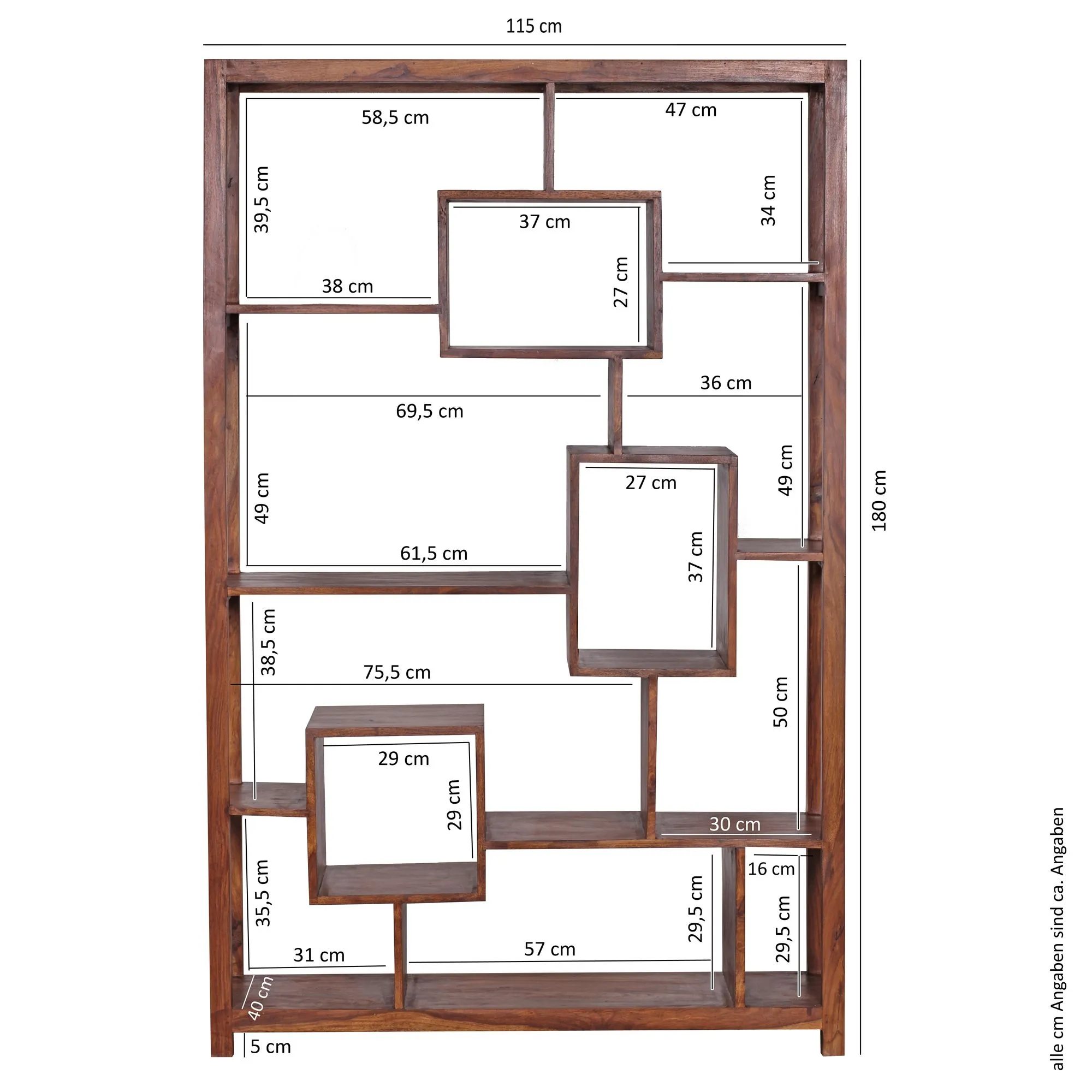 tinkaro rechteckiges Bücherregal ANCILLA Massivholz Sheesham 012920 Regal Raumteiler Braun