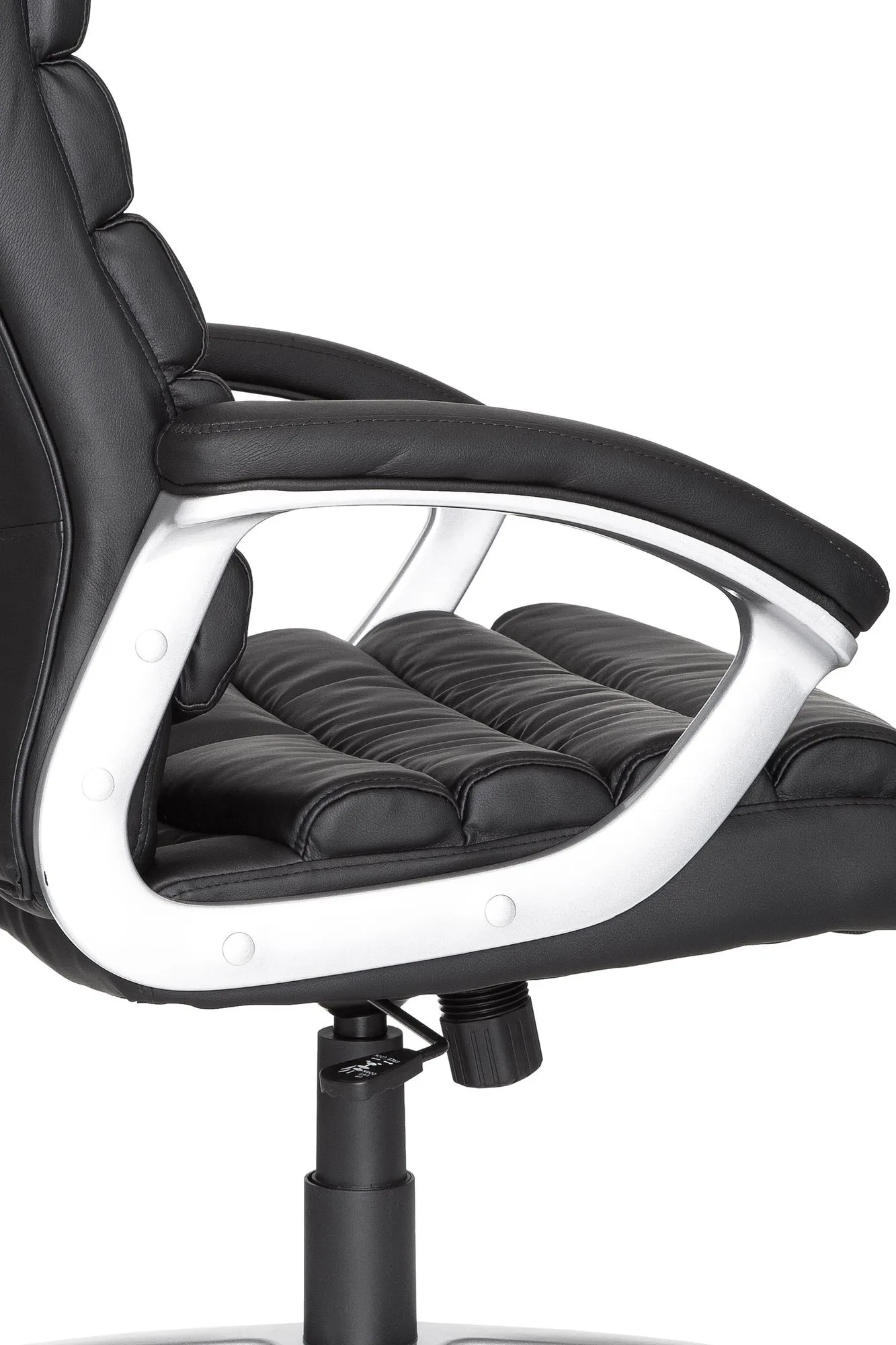- Moderne Kunststoff Armlehnen (alufarben lackiert) mit weicher Polsterung