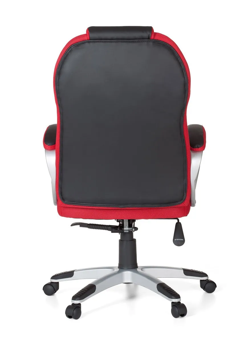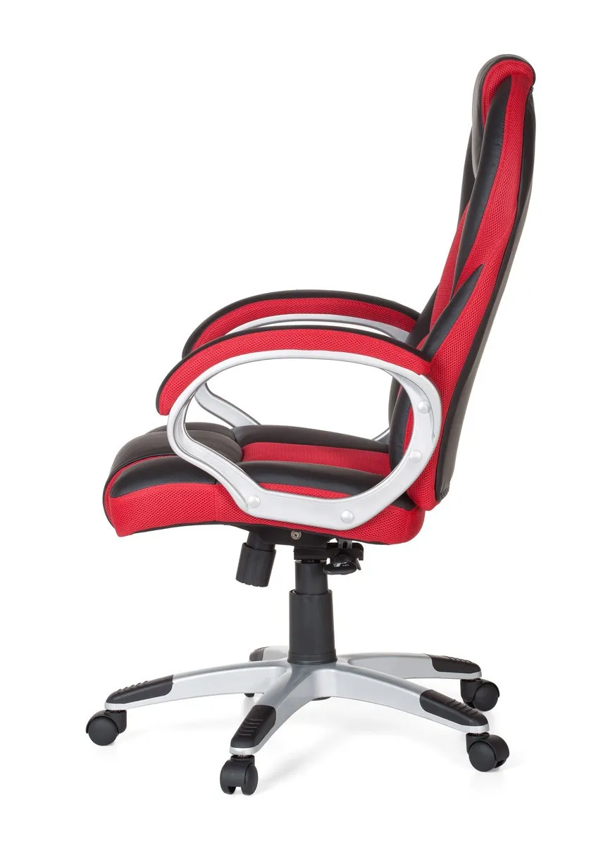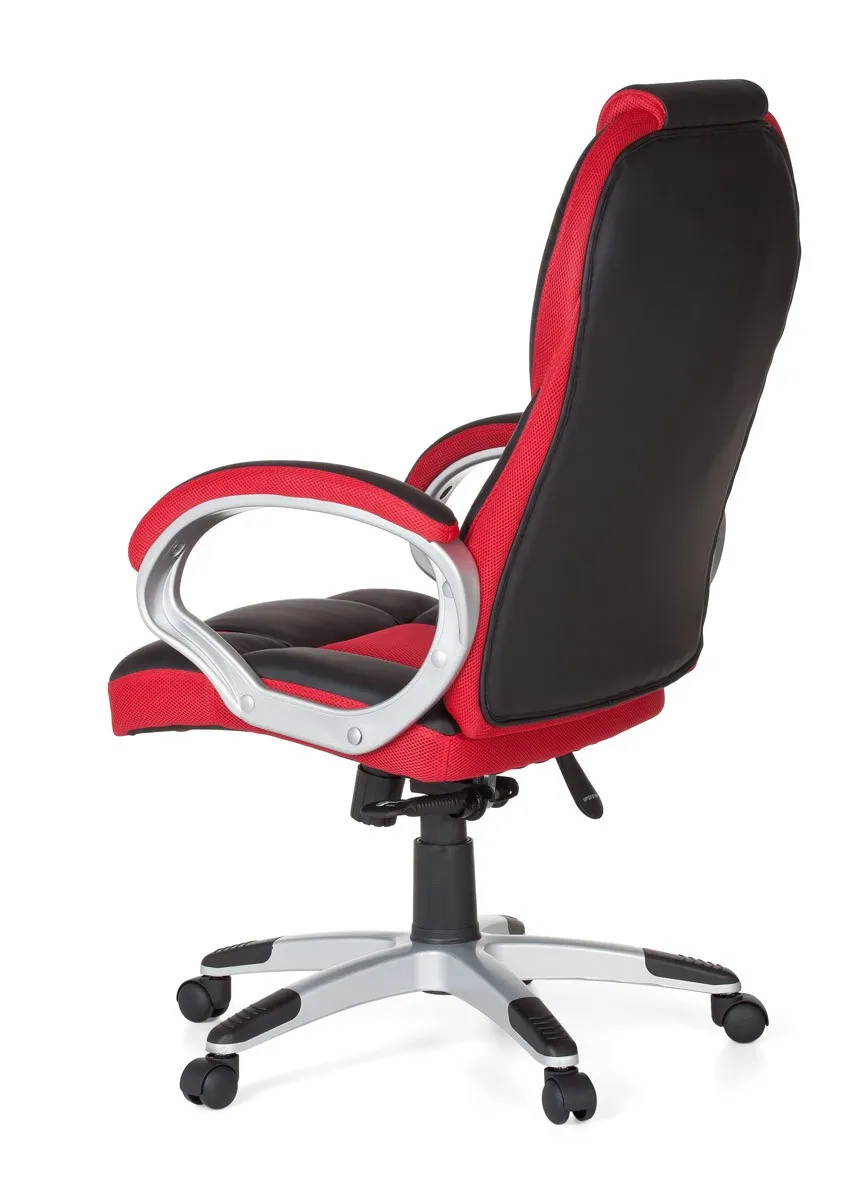 - Farbe: Rücken & Sitz: Rot / Schwarz / Fußkreuz: alufarben / Armlehnen: Alufarben / Armlehnen Polsterung: Rot / Schwarz