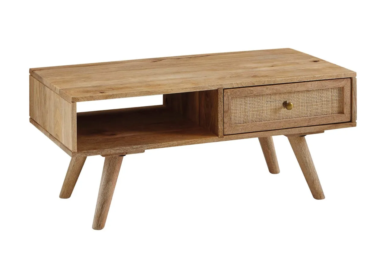 Schöner Holztisch mit Schublade Wohnzimmertisch Mangoholz Sofatisch von tinkaro