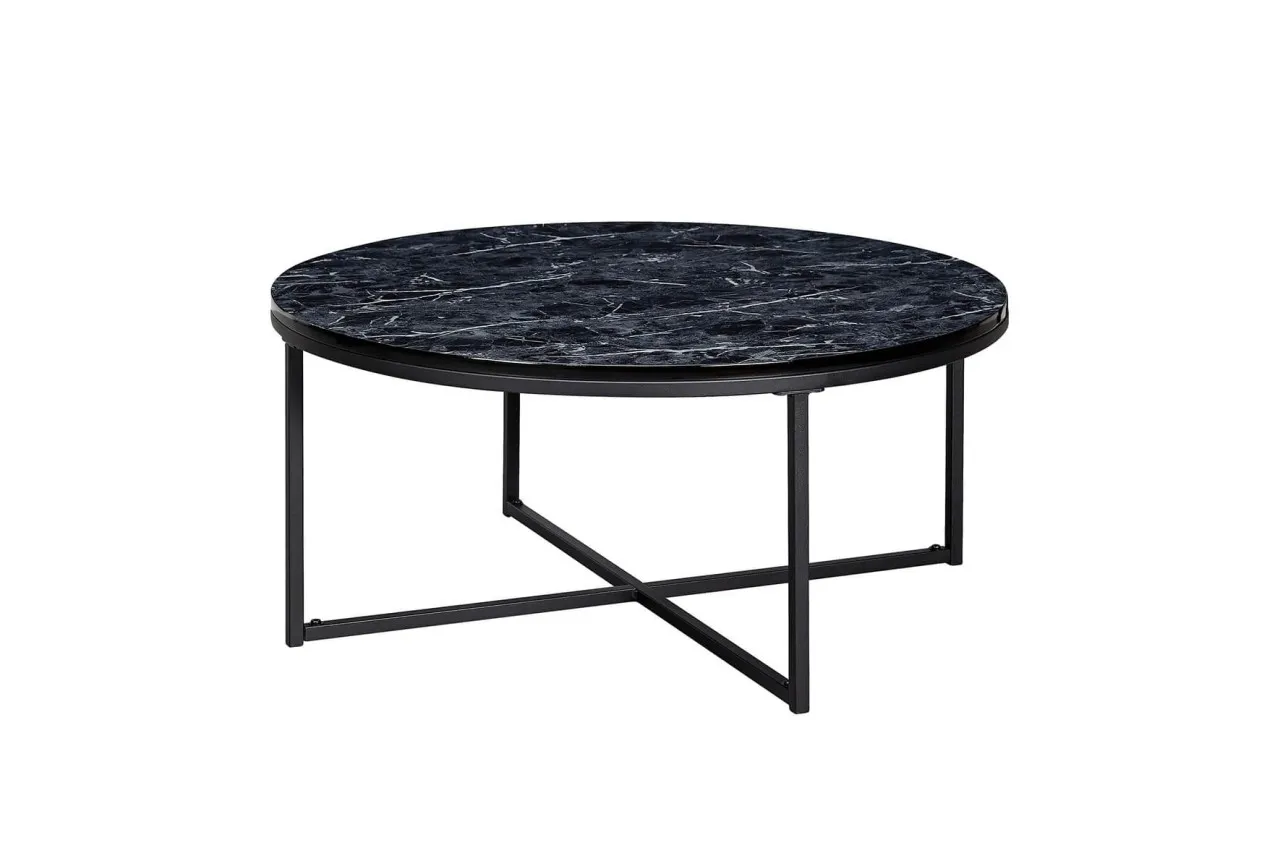 tinkaro Couchtisch rund DEVRAN Holz Wohnzimmertisch Schwarz Marmor-Hochglanz-Optik