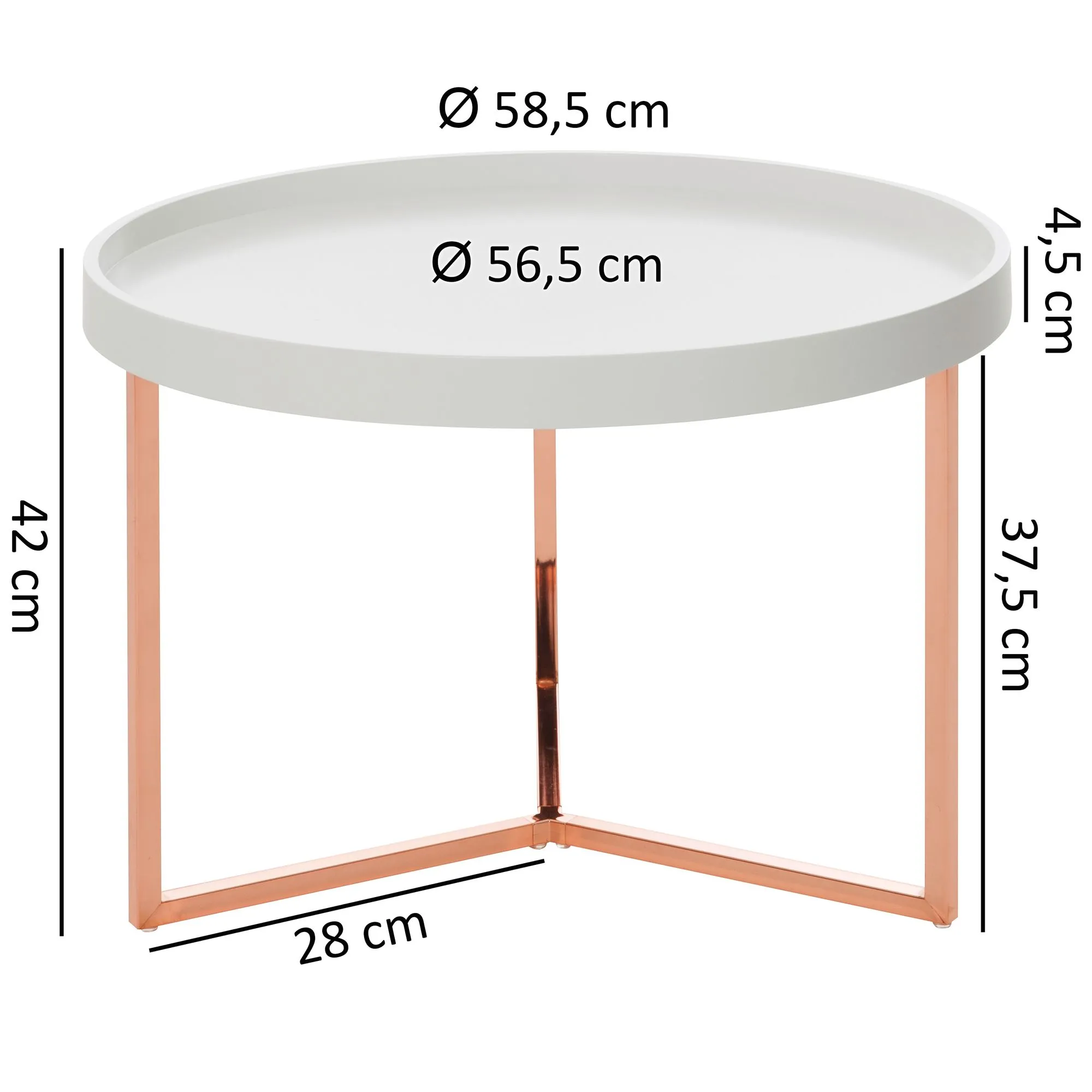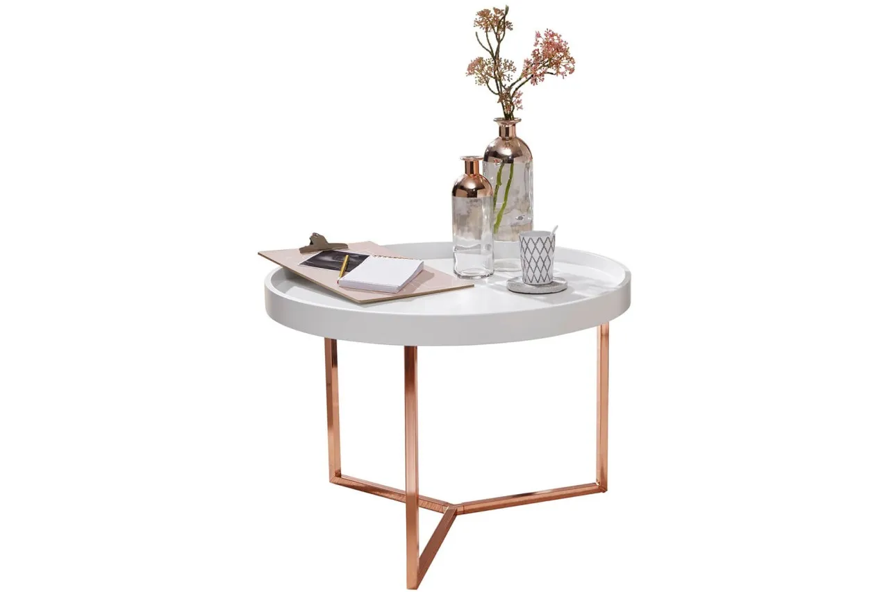 tinkaro Couchtisch rund HEW Tulpenholz Sofatisch Weiß/Kupfer