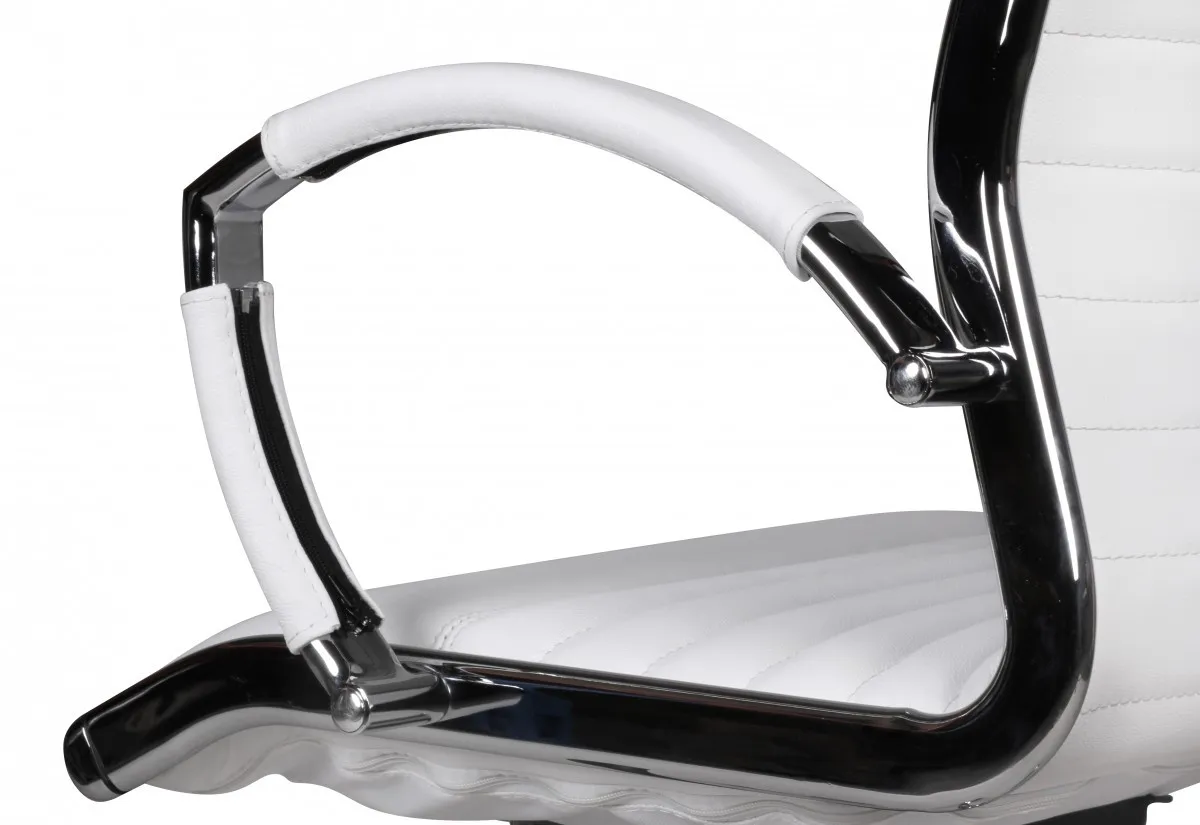 - Farbe: Sitzfläche, Rückenlehne & Bezug der Armlehnen: Weiß / Fußkreuz & Armlehnen: Silber