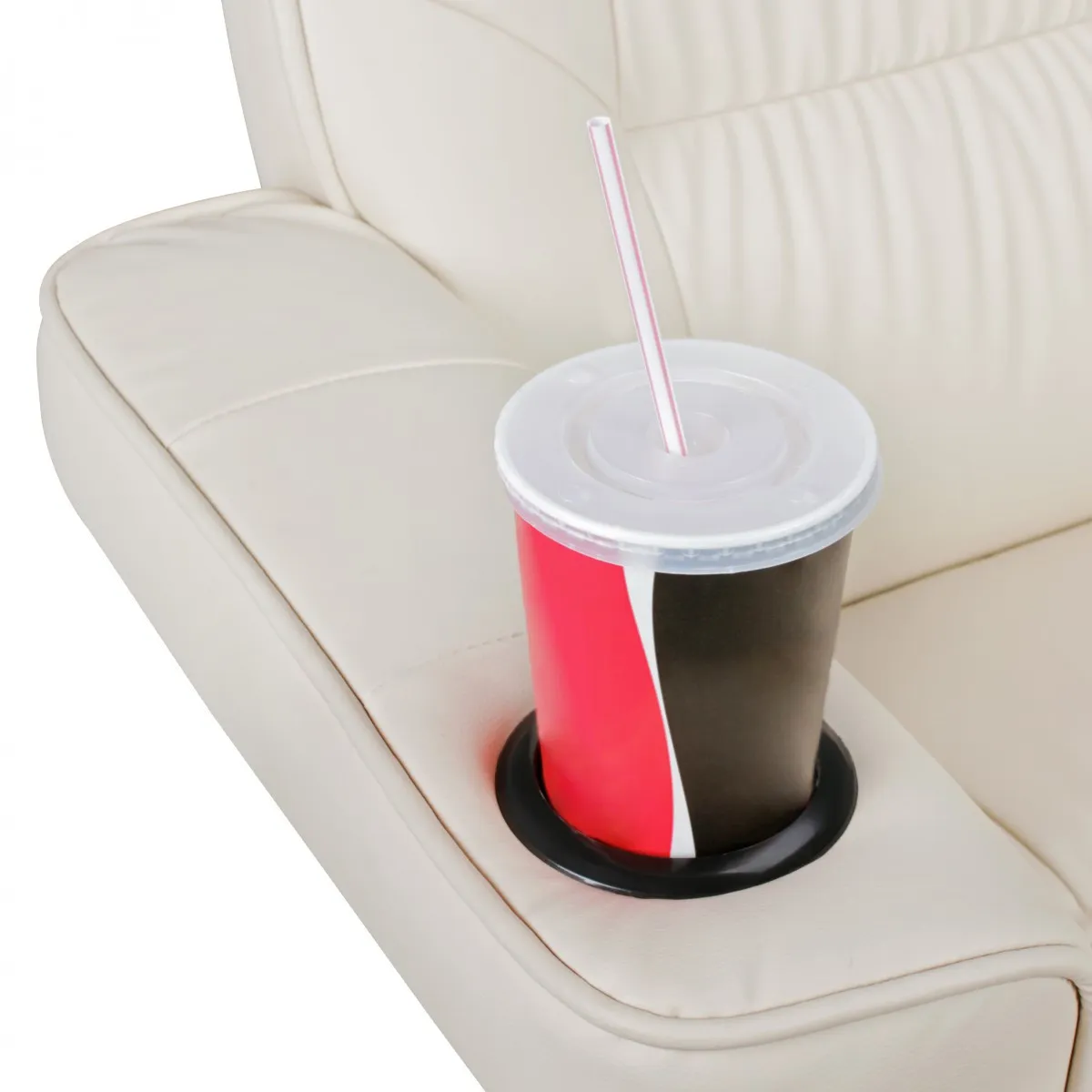 - Formschöne, nach außen geschwungene Armlehnen mit 2 Getränkehaltern