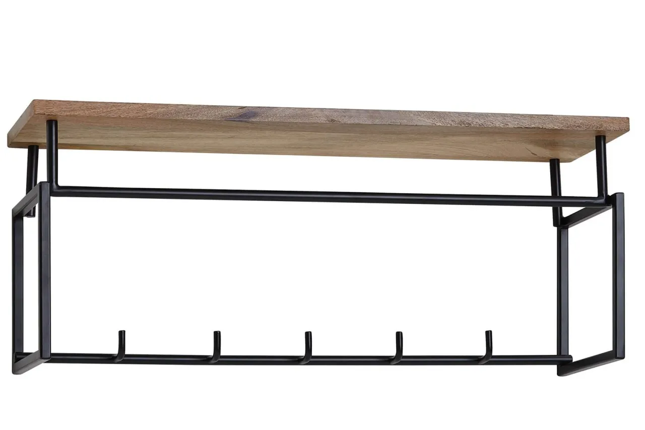 - Wandgarderobe mit fünf Haken, einer Kleiderstange und einer Ablagefläche