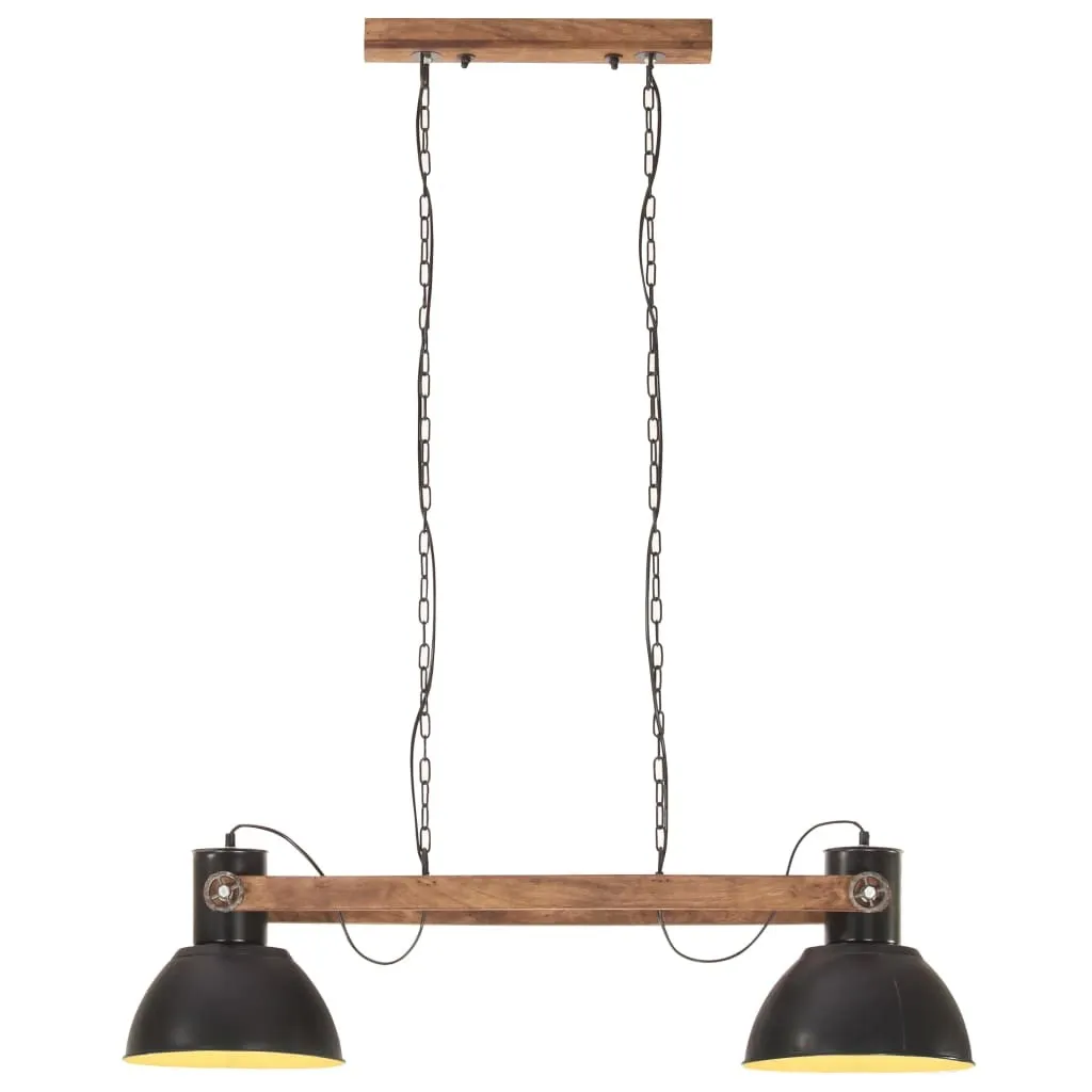Mit einer Gesamtlänge von 109 cm und einem Durchmesser von 29 cm pro Lampenschirm ist diese Hängelampe ein echter Hingucker im Wohnzimmer, Esszimmer oder Büro. Der Lampenschirm aus Eisen mit schwarzer Beschichtung und massivem Mangoholz mit verwittertem braunem Finish passt perfekt zu jedem Interieur im Landhaus- oder Industriestil. Die Deckenleuchte mit 2 Lampenschirmen verfügt über E27-Fassungen für Glühbirnen von maximal 25 Watt. Sie können E27-Leuchtmittel mit verschiedenen Leuchtfarben auswählen und einsetzen, um eine Atmosphäre der Entspannung und Ruhe zu schaffen. Bitte beachten: Diese Lampe im Industriestil weist Unvollkommenheiten am Lampenschirm auf, was der Lampe ihre eigene Identität verleiht und sie durch ihre raue Optik einzigartig macht. Die Leuchtmittel sind nicht im Lieferumfang enthalten.