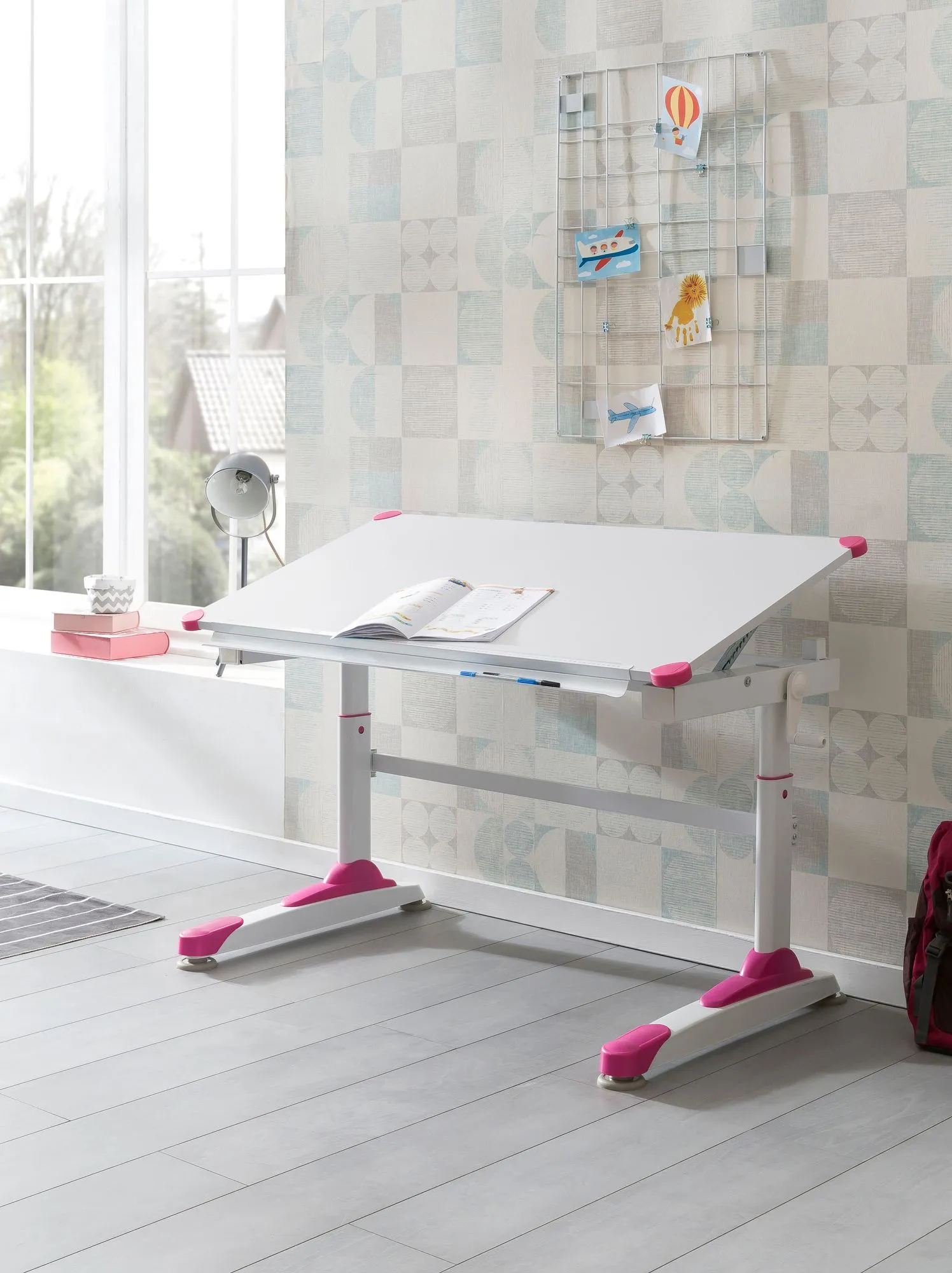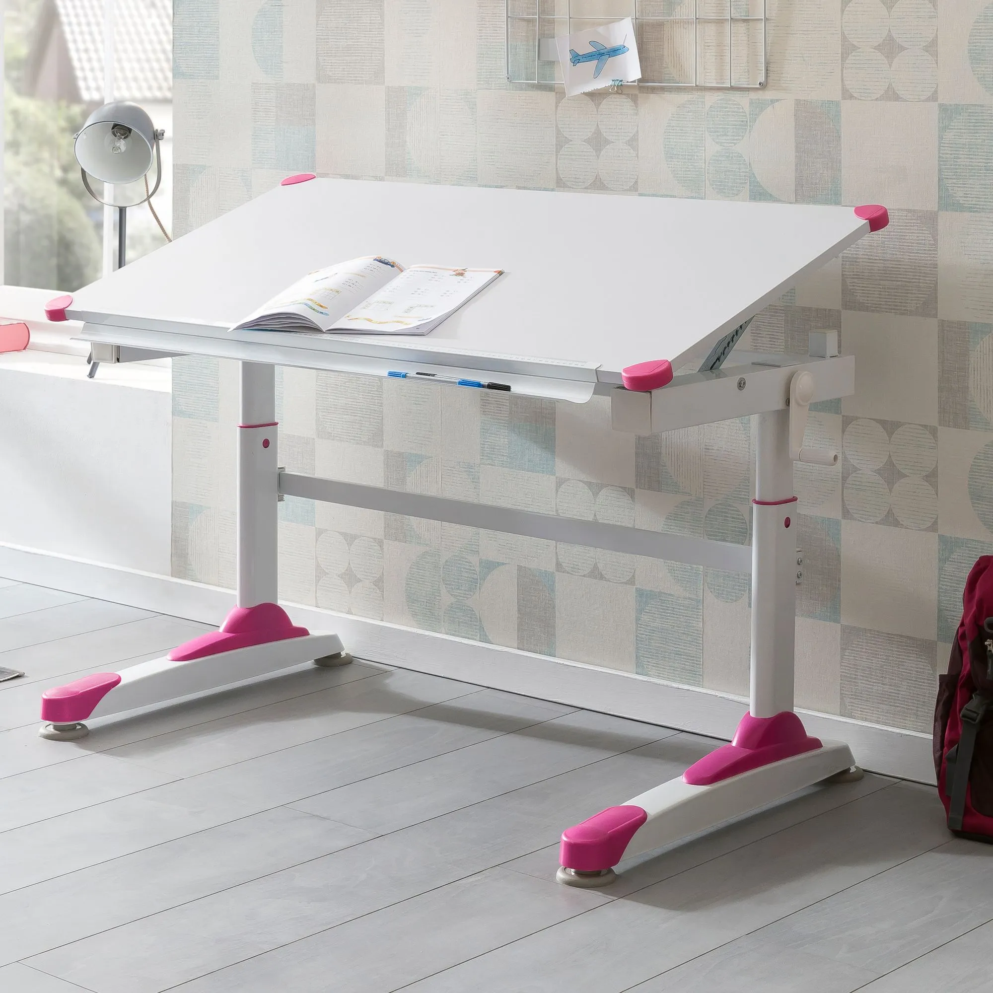 tinkaro Kinderschreibtisch eckig NAFISA Holz Maltisch Pink/Weiß