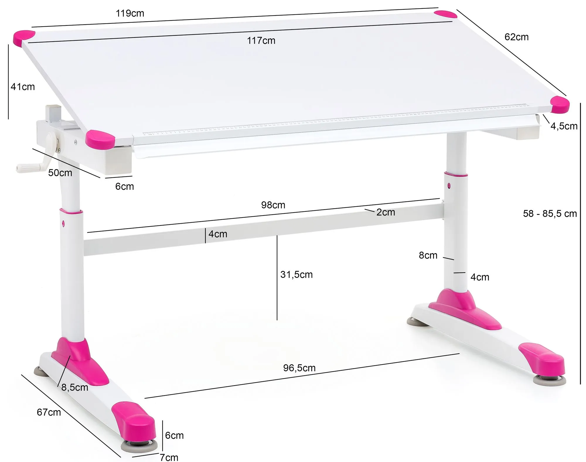 tinkaro eckiger Kinderschreibtisch NAFISA Holz 012272 Maltisch Schülerschreibtisch Pink/Weiß