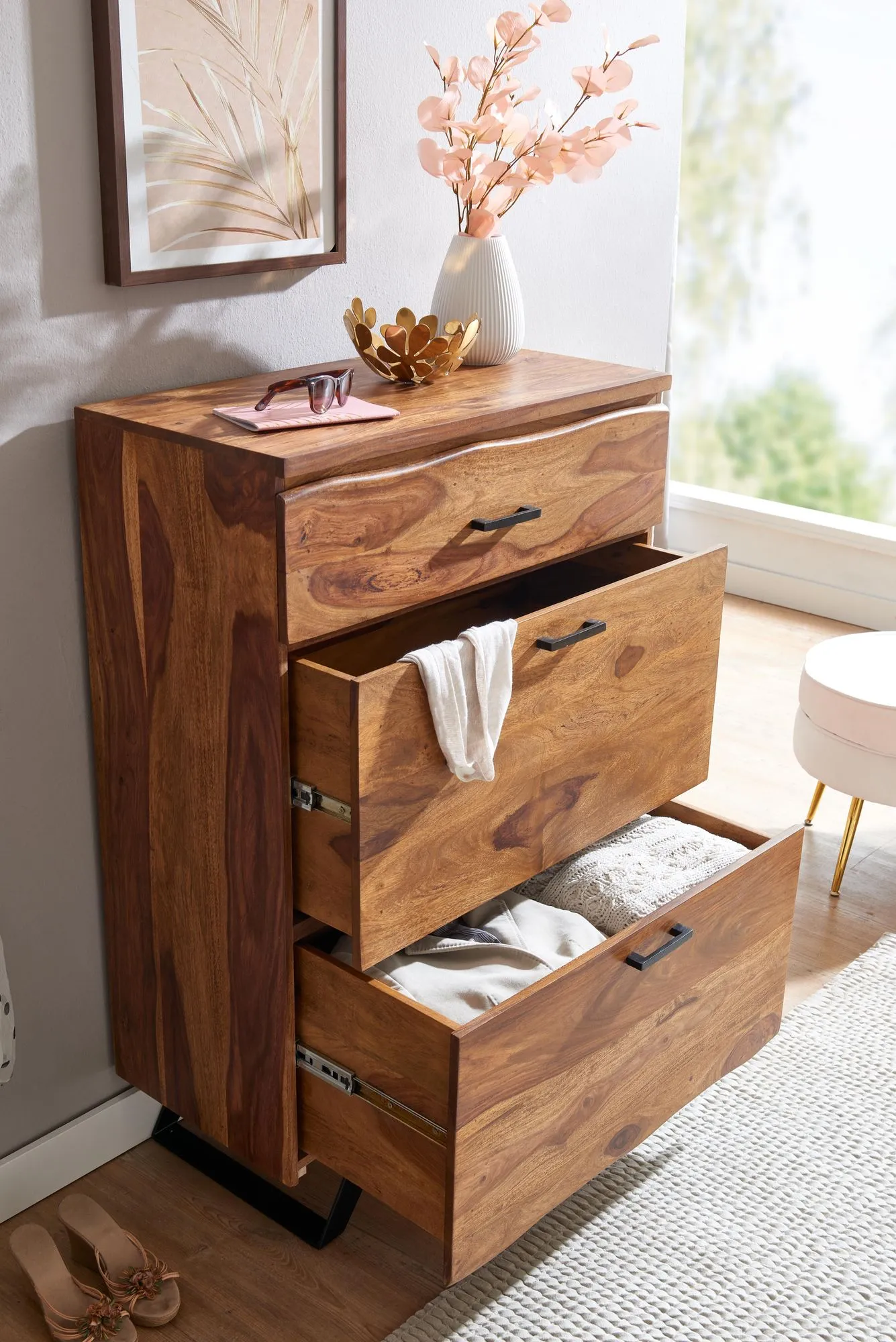 tinkaro Kommode BLEND Sheesham Massivholz / Metall 013411 Flurkommode Schubladenkommode Natur