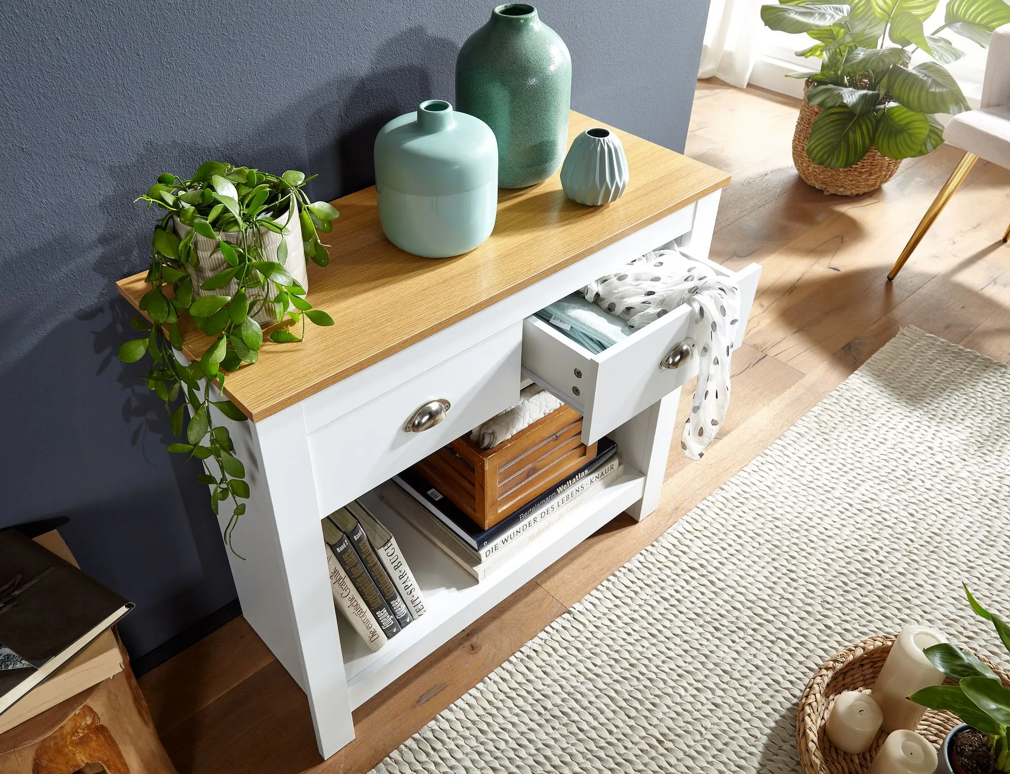 tinkaro Konsolentisch rechteckig AISTIS Holz Telefontisch Weiß/Eiche