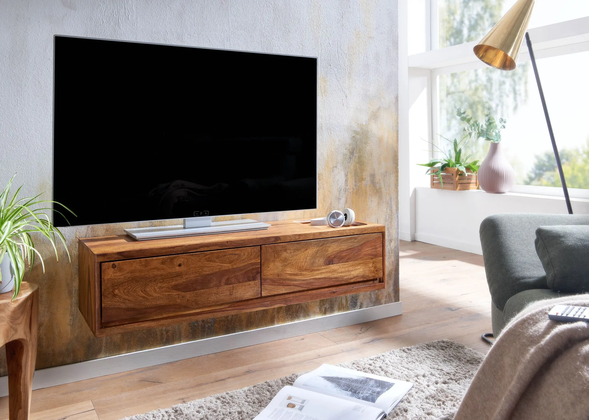 tinkaro Lowboard BORES Sheesham Massivholz TV-Schrank Braun