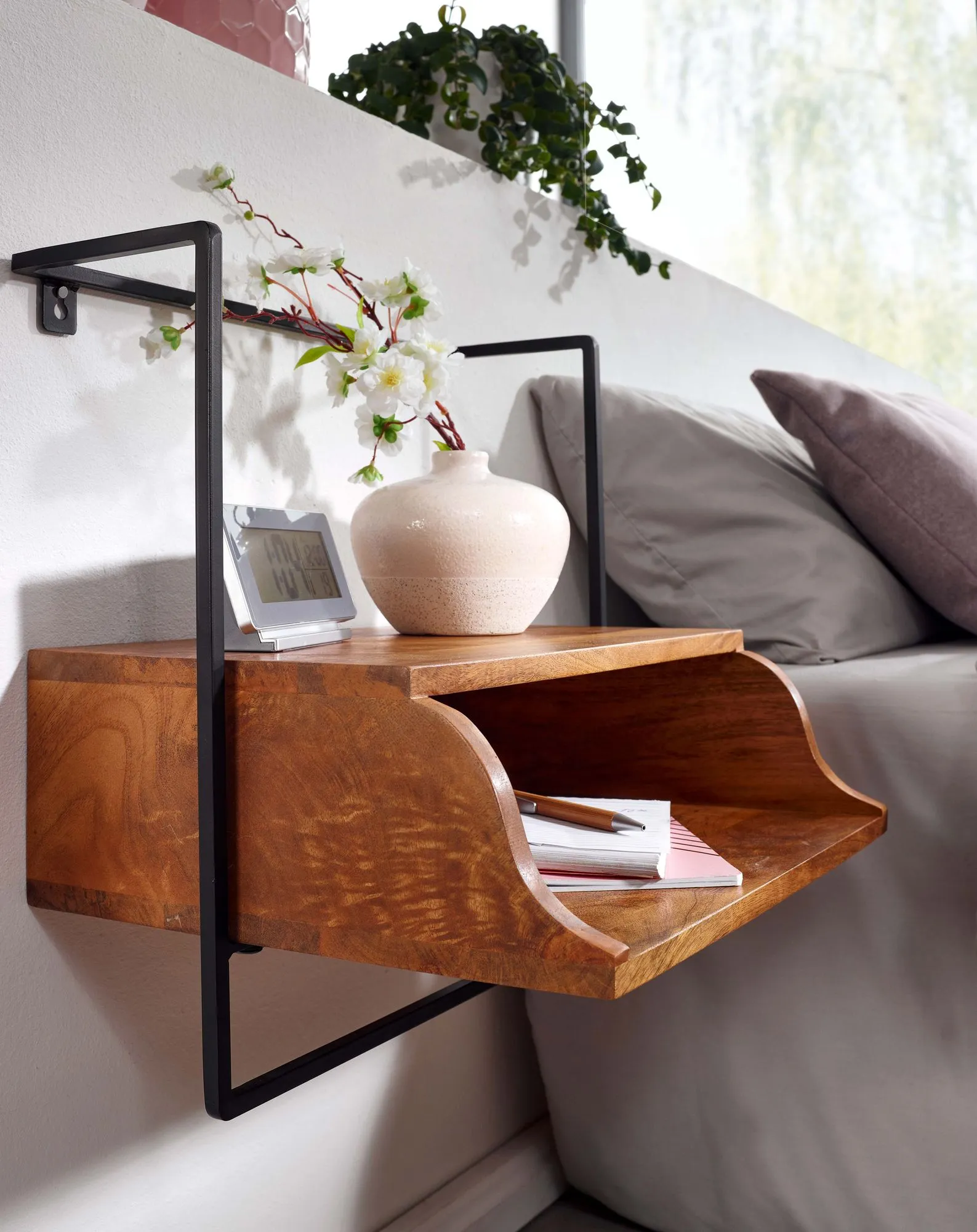 tinkaro Nachtkonsole DILARA Mango Massivholz Nachttisch Braun