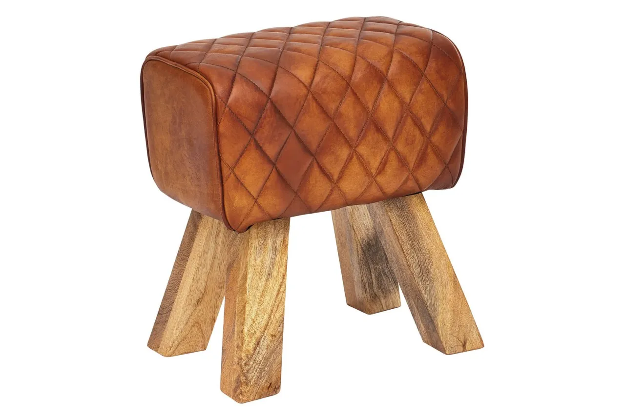 tinkaro Ottomane eckig DRAGA Ziegenleder/Mango Massivholz Sitzhocker Braun