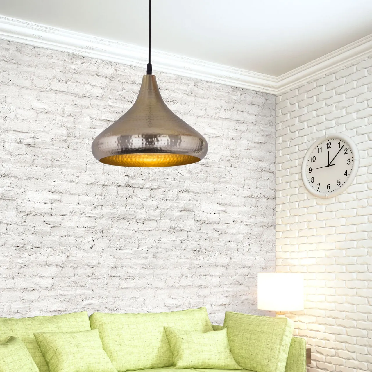 - Pendelleuchte in Tropfenform mit Körper handgefertigt aus gehämmertem Metall