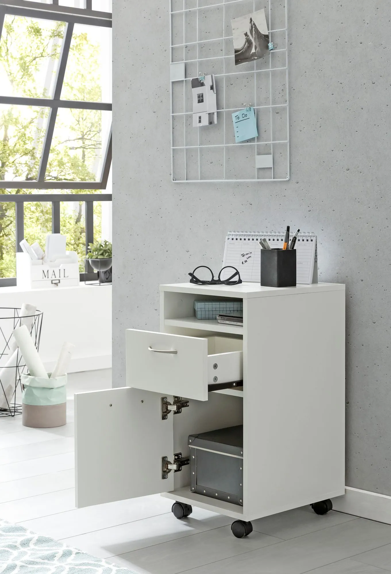 tinkaro Rollcontainer eckig ANNETTE Holz Schreibtisch-Unterschrank Weiß