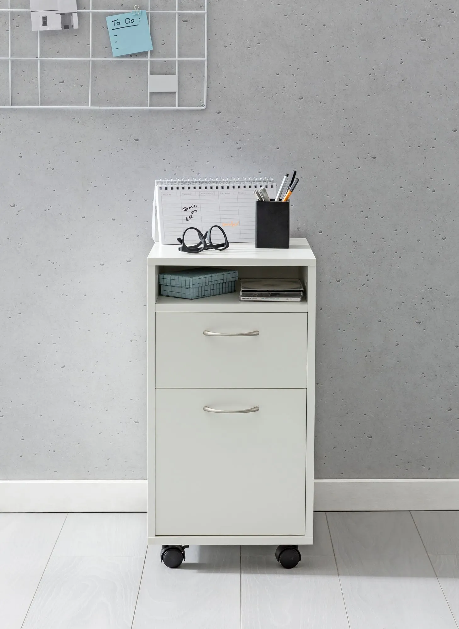 tinkaro eckiger Rollcontainer ANNETTE Holz 013124 Schreibtisch-Unterschrank Roll-Kommode Weiß