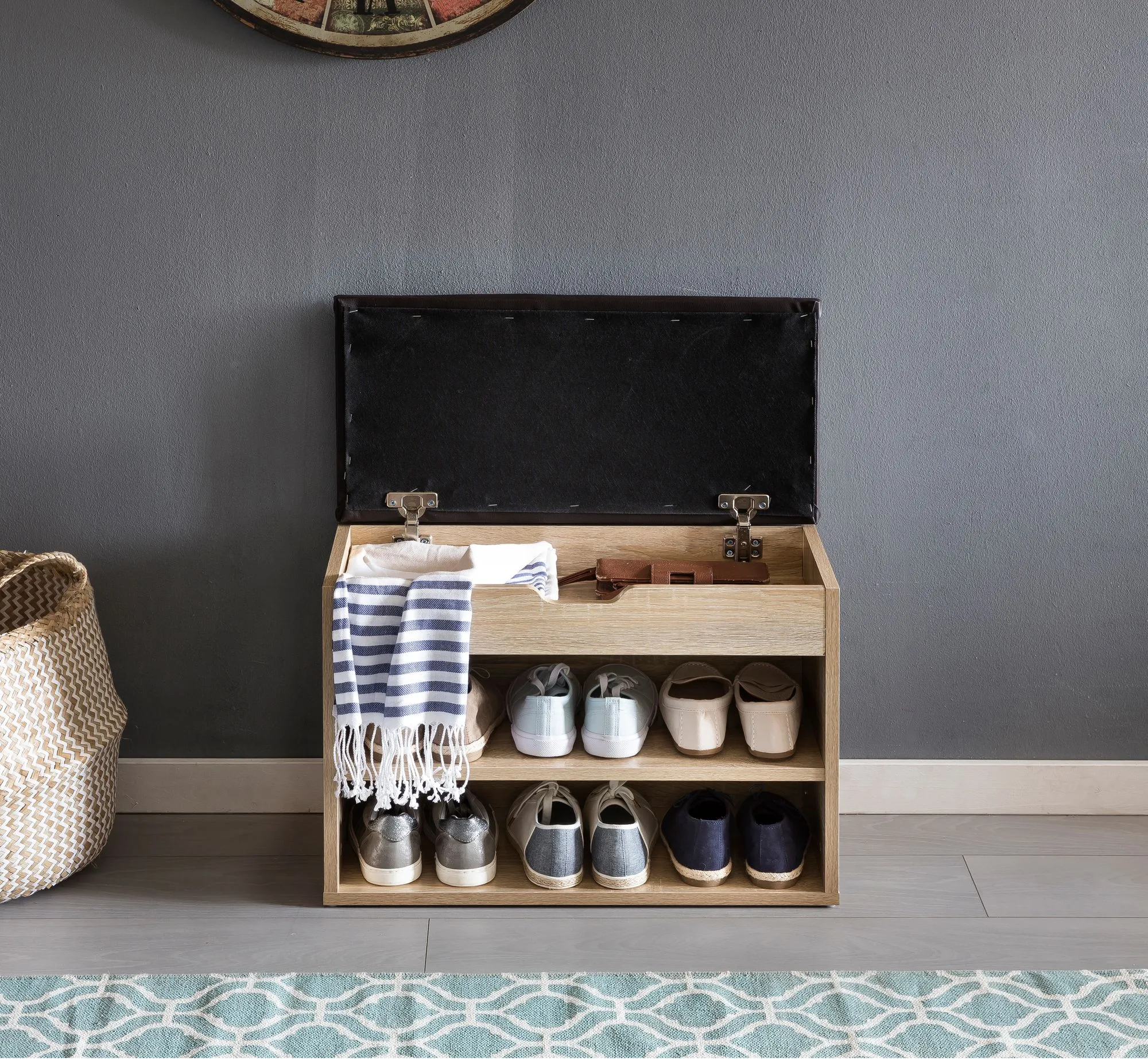 tinkaro Schuhbank rechteckig ATTILA Holz Garderoben-Bank Sonoma Braun