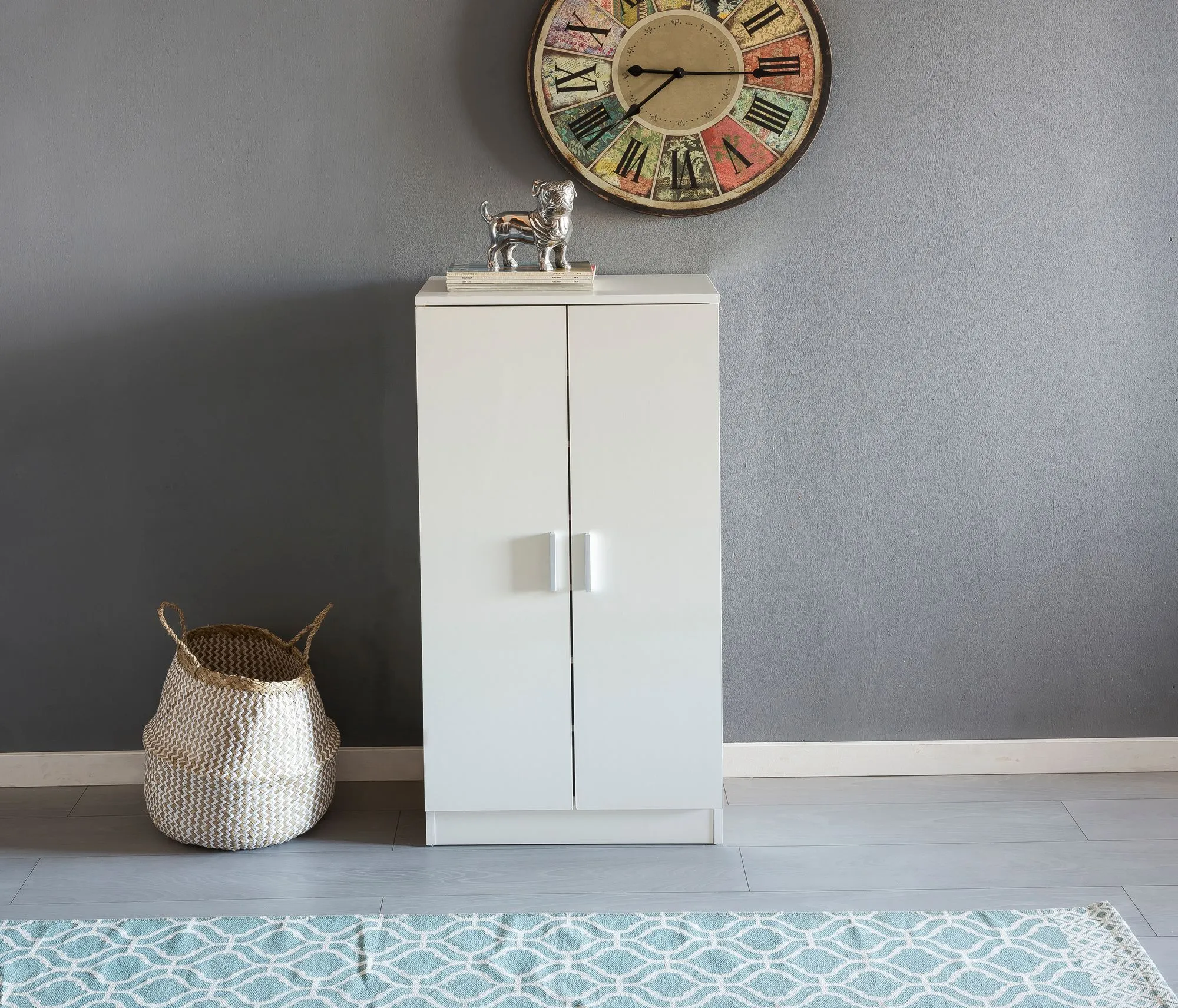 - Farbe: Flurschrank: Weiß / Griffe: Silbern
