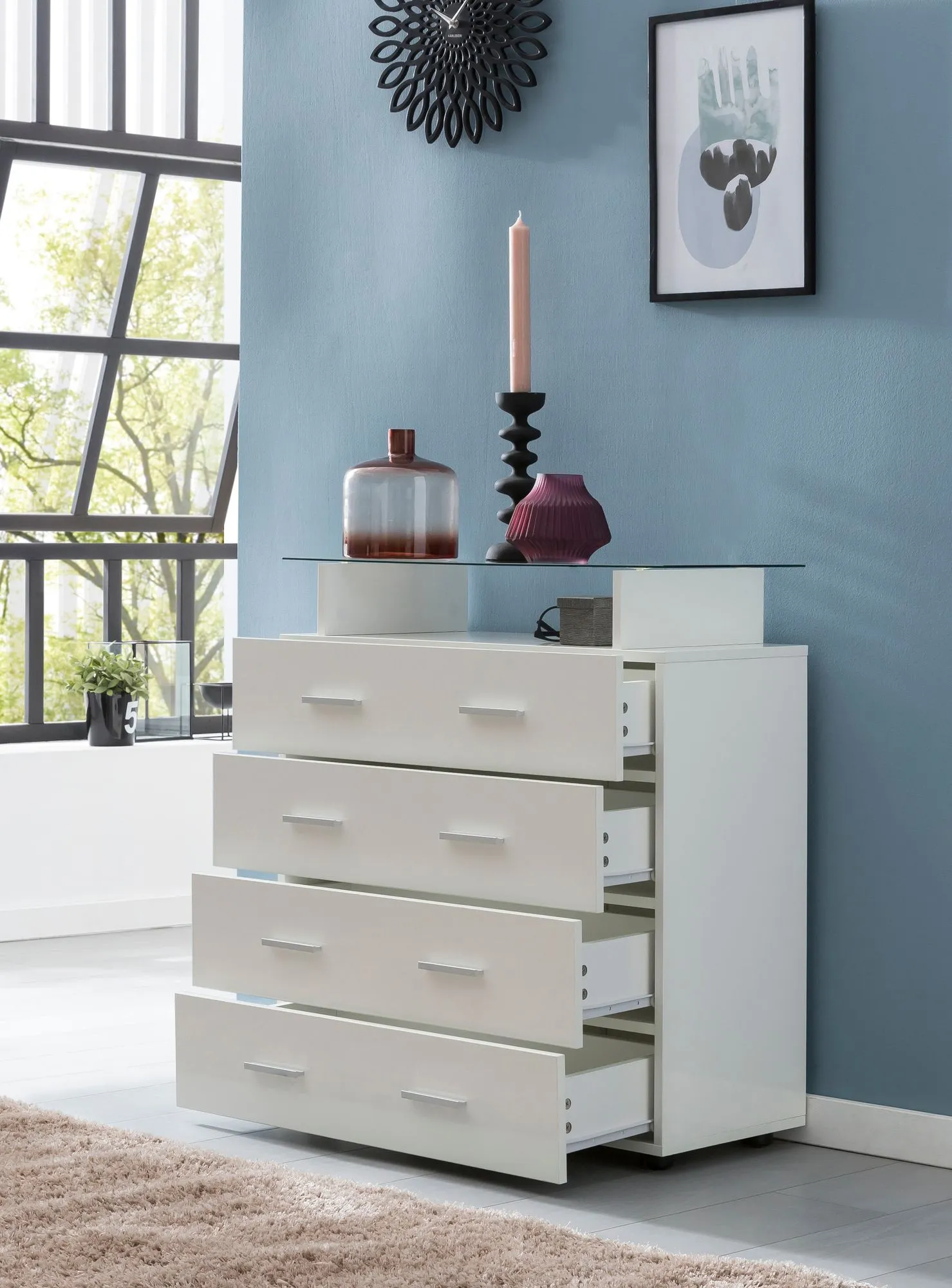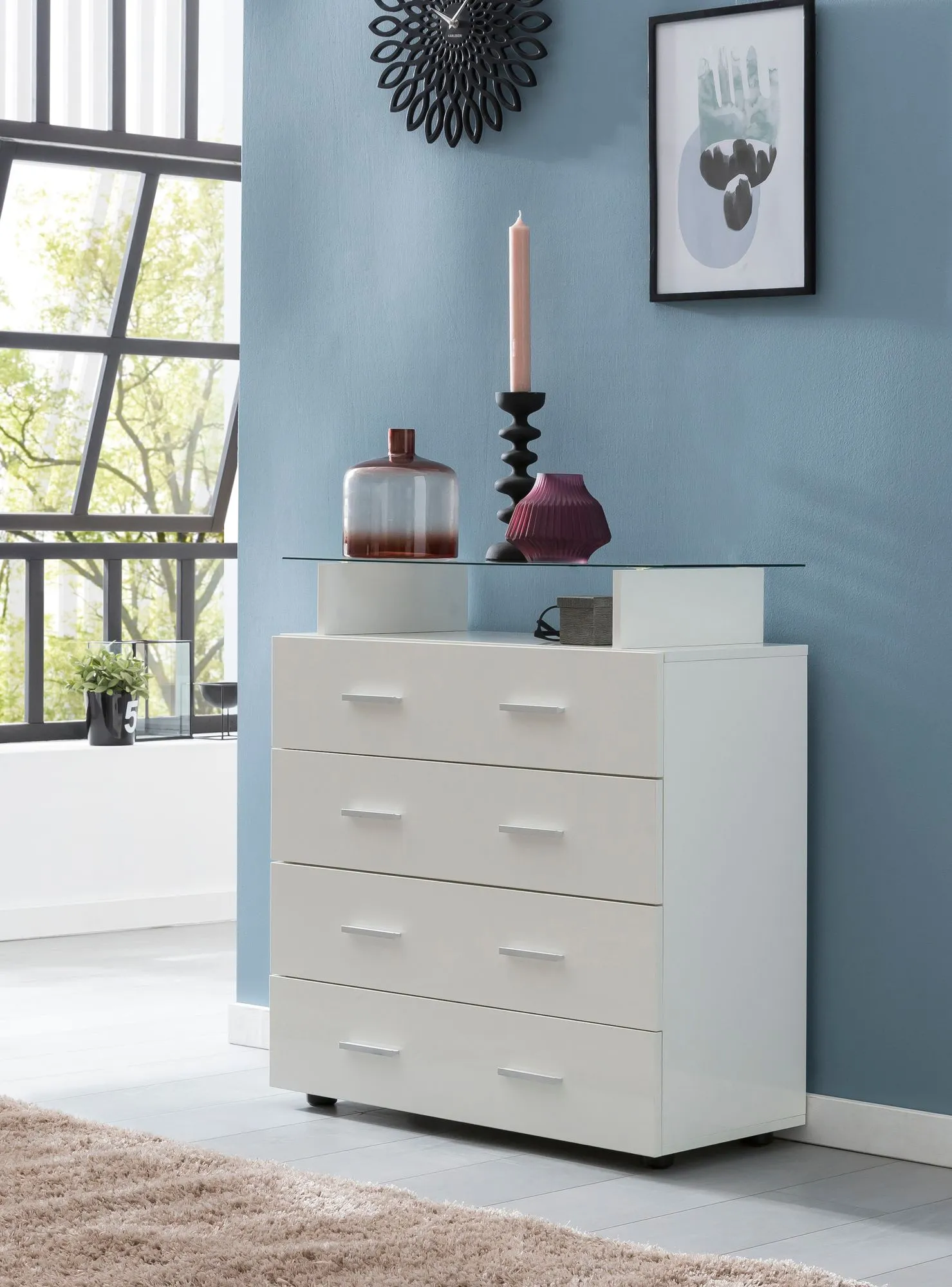 tinkaro eckiges Sideboard ARTMIR Holz 012281 Anrichte Schubladenkommode Weiß