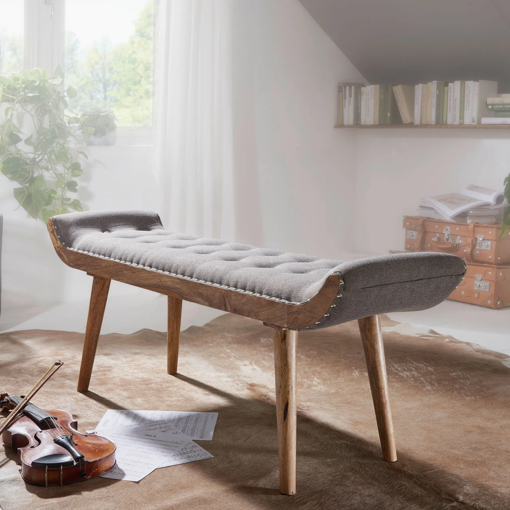 tinkaro Sitzbank eckig LINDA Massiv-Holz Chesterfield-Design Bank Grau/Braun