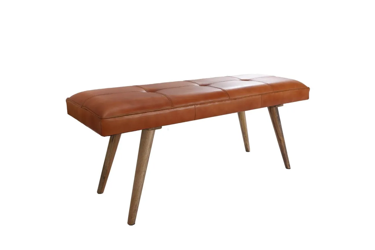tinkaro rechteckige Sitzbank ABEL Ziegenleder / Massivholz 012680 Flurbank Polsterbank
