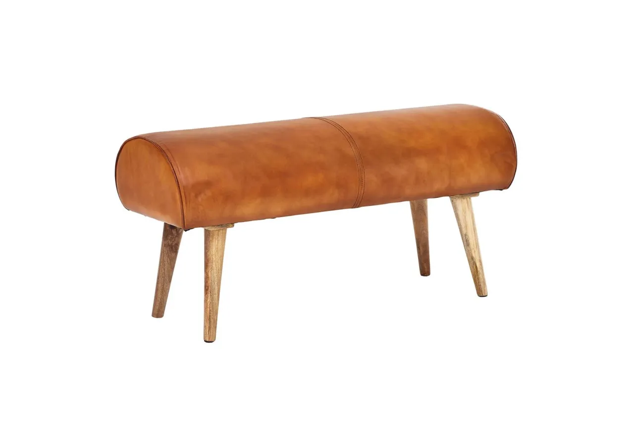 tinkaro Sitzbank rechteckig JERZY Echtleder/Massivholz Bank Braun
