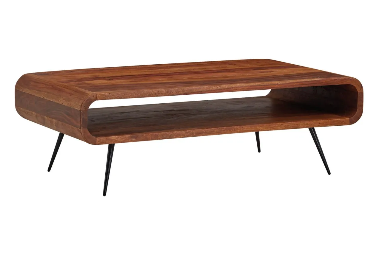 tinkaro Sofatisch rechteckig SORA Sheesham Massivholz/Metall Wohnzimmertisch Braun