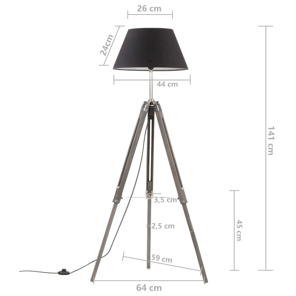 tinkaro Stativlampe BALYS Teak Massivholz 062822 Stehlampe Wohnzimmerleuchter Schwarz/Gold
