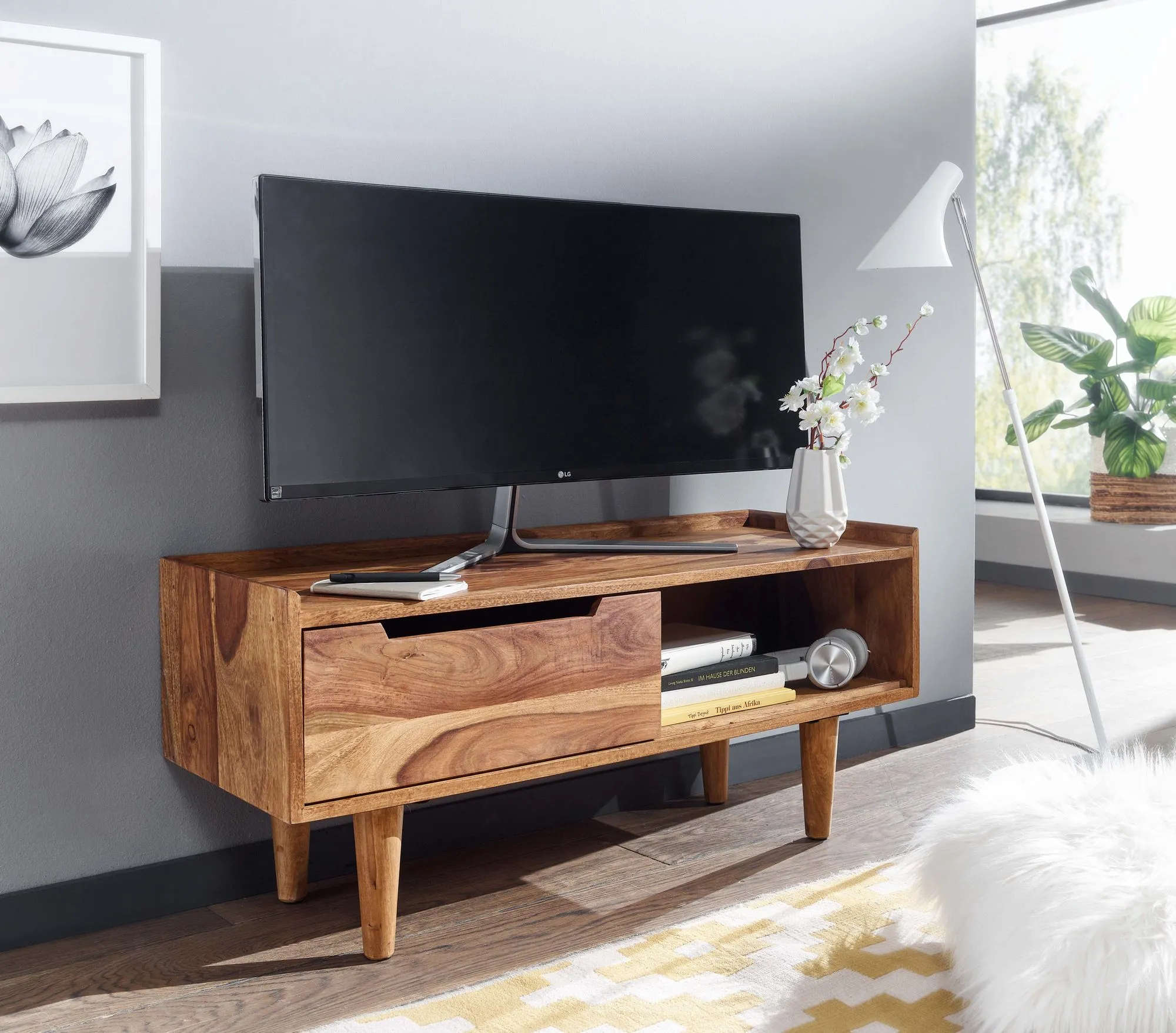 tinkaro TV-Kommode ERLIS Sheesham Massivholz Lowboard Braun