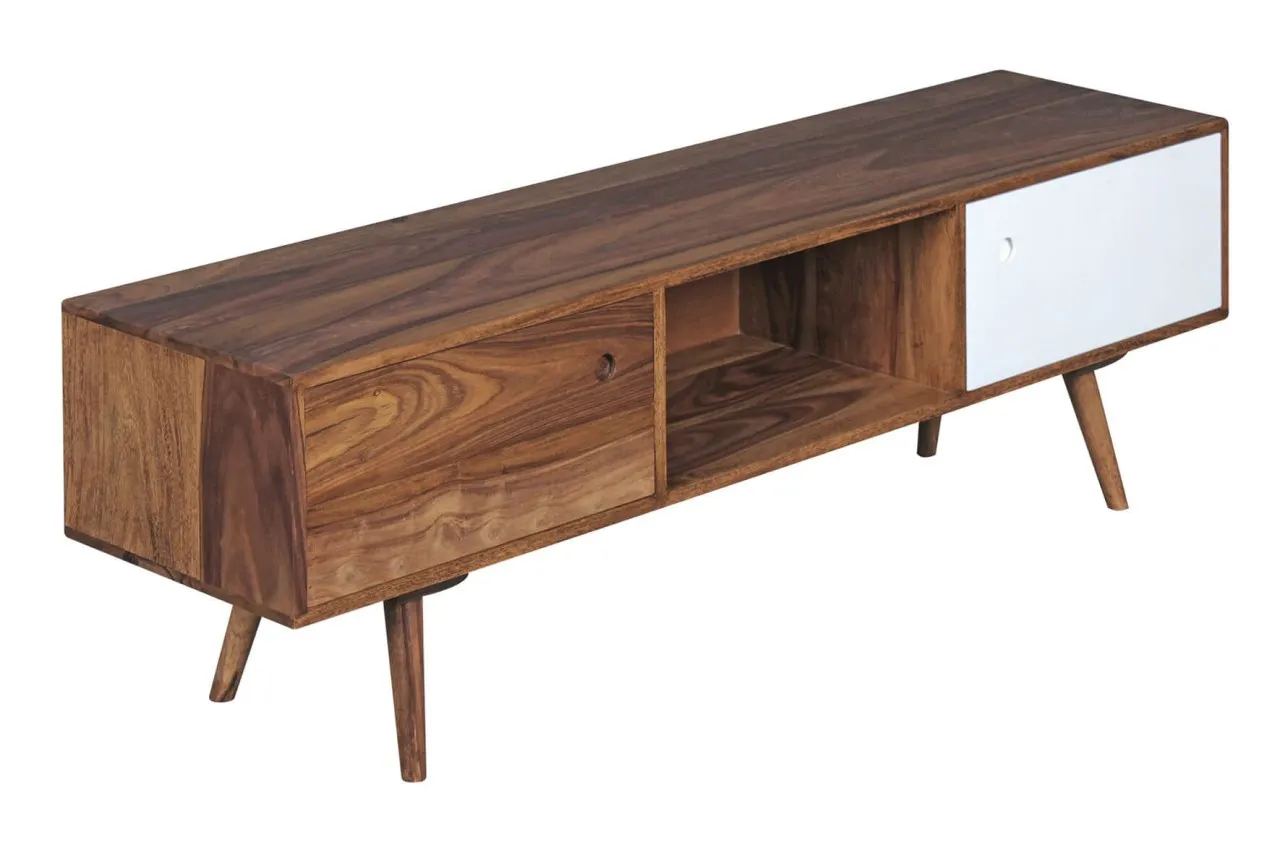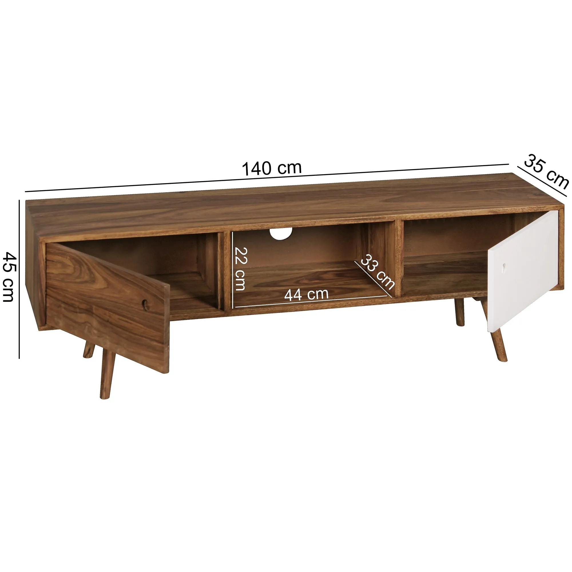 tinkaro TV Lowboard rechteckig TELSE Massiv-Holz Sheesham TV-Schrank Braun/Weiß