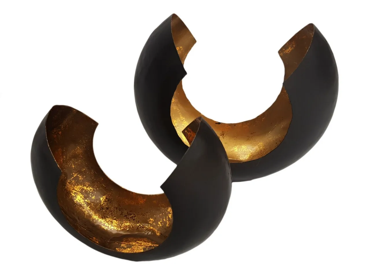 tinkaro Teelichthalter 2er-Set BETTY Metall 900303 Kerzenhalter Windlichter Schwarz/Gold