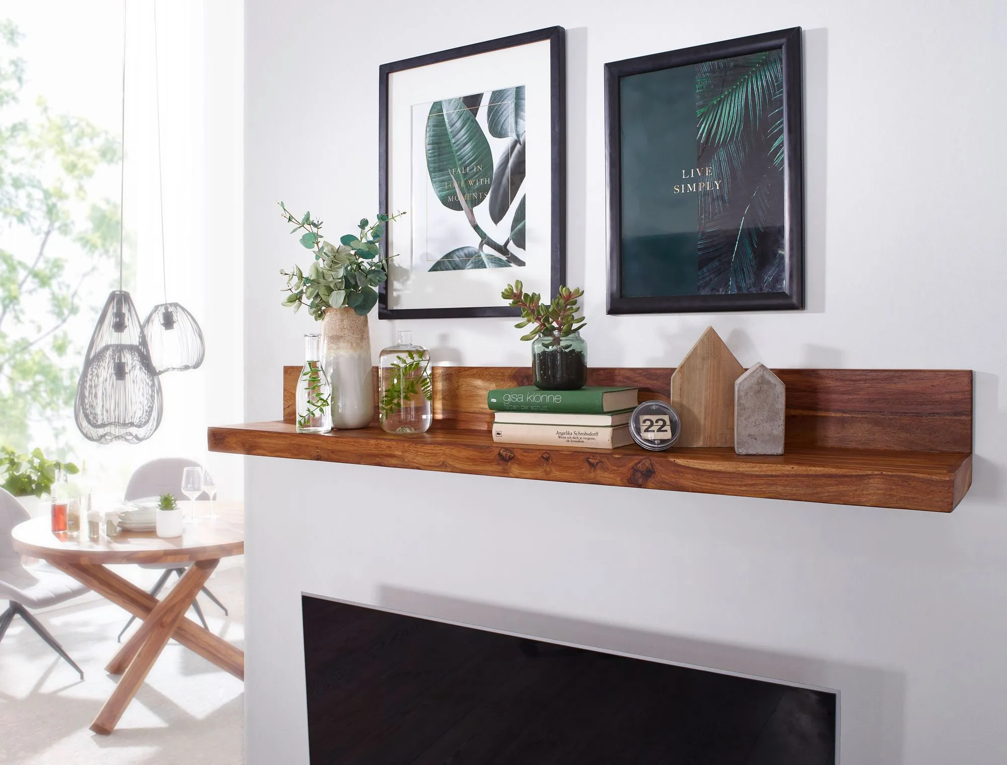 tinkaro Wandregal eckig LONI Massiv-Holz Sheesham Holzregal Braun