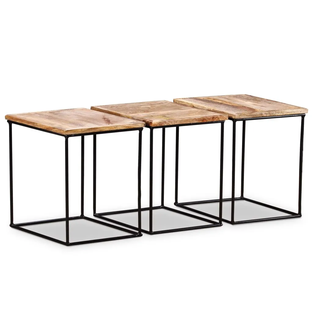 tinkaro eckiger Wohnzimmertisch KOFI Mangoholz Massiv 062666 Couchtisch Sofatisch 3-teilig Braun