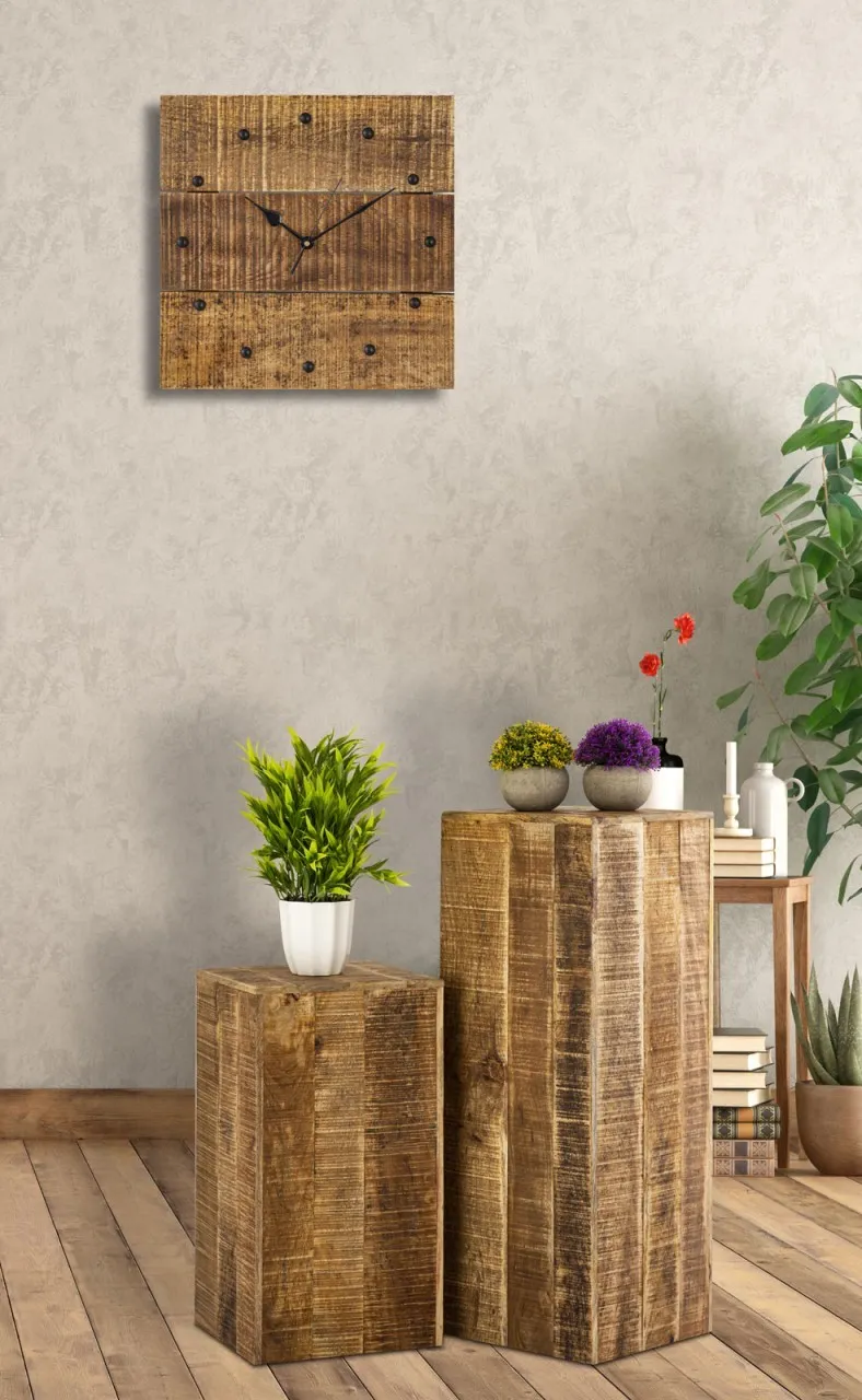 tinkaro Wohnzimmeruhr ASSAN Mangoholz Wanduhr Braun