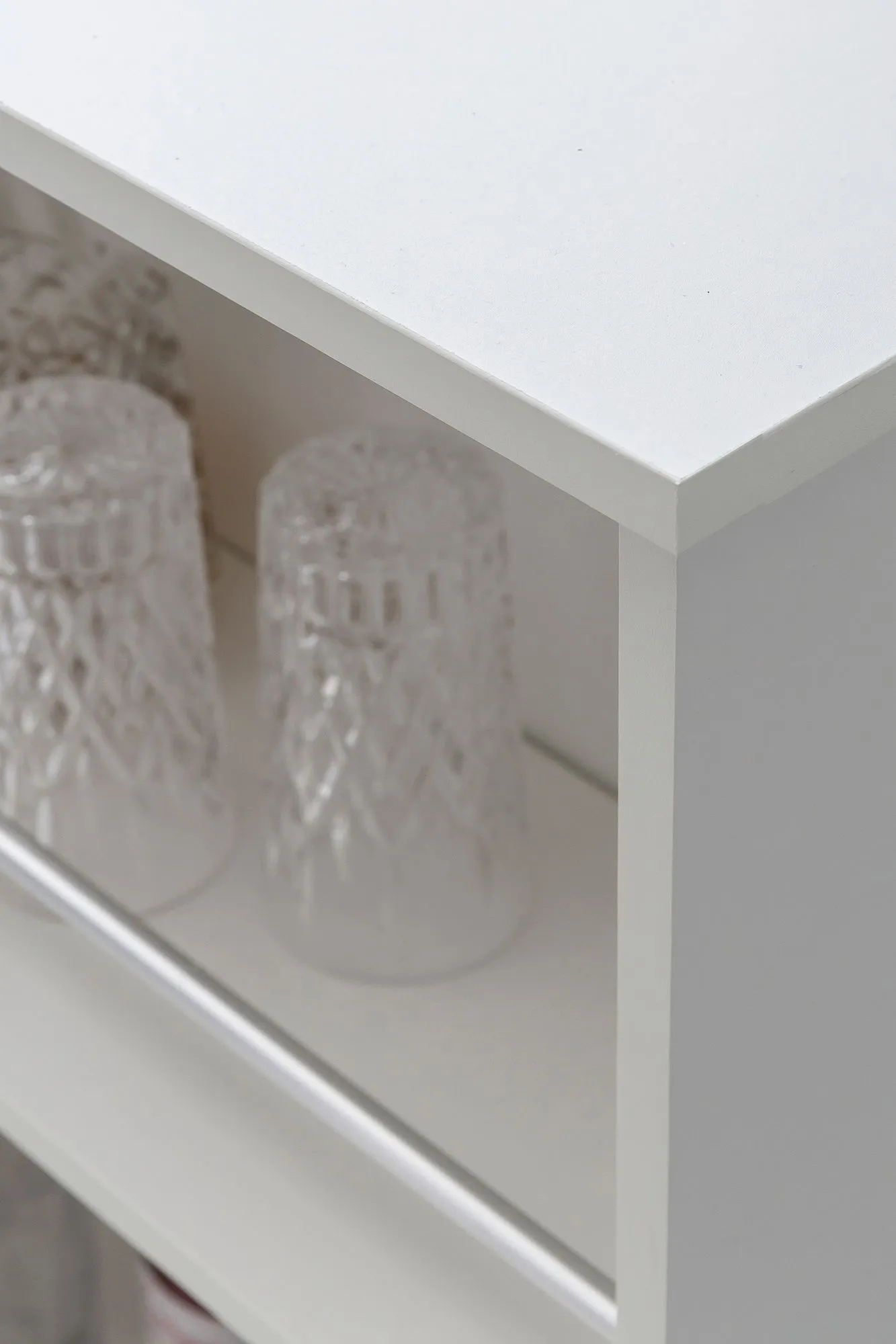 - Drei Fächer zur Unterbringung von Weinflaschen, Gläser und Küchenutensilien
