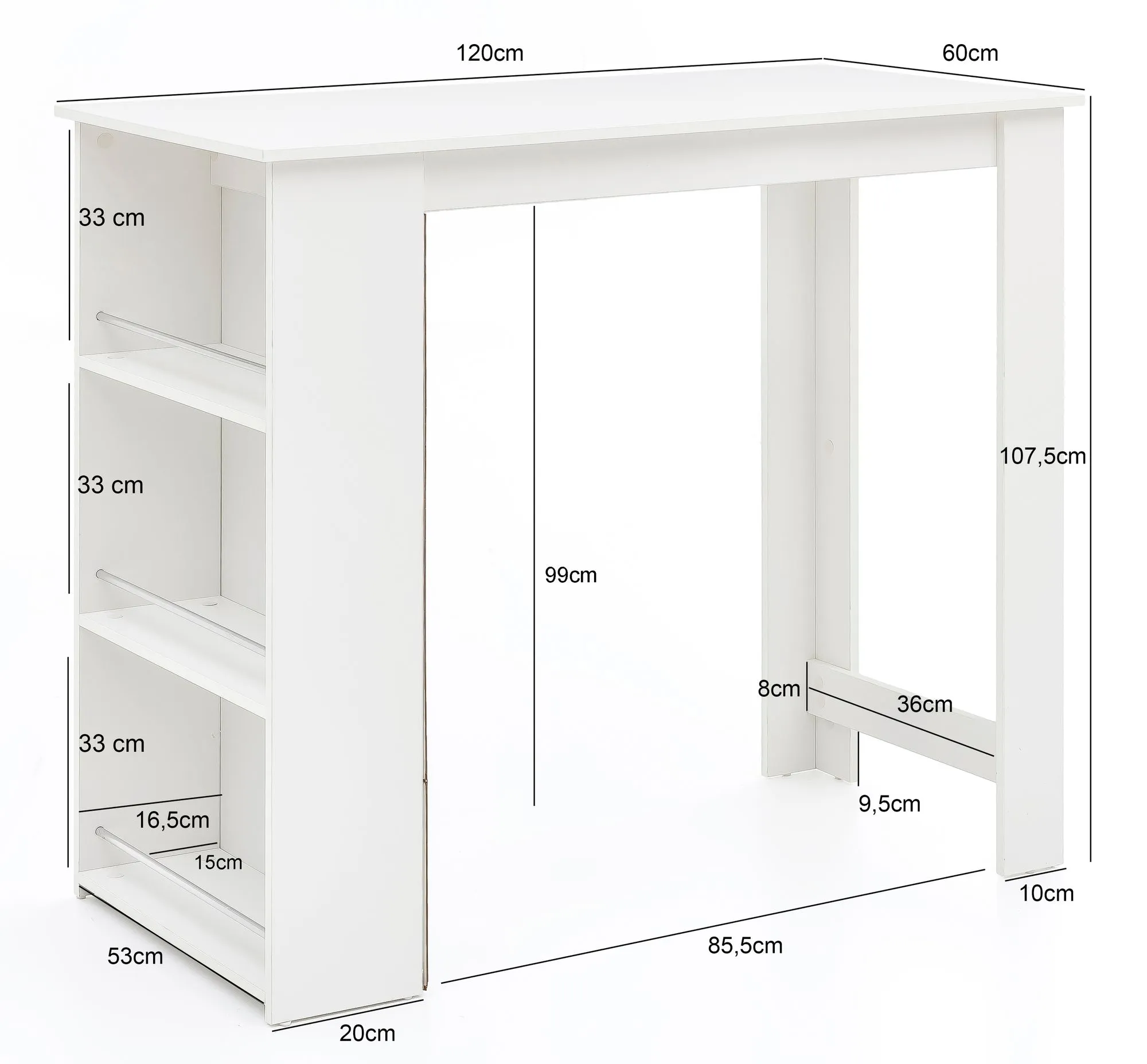 tinkaro eckiger Bartisch MARGIT Holz 013097 Stehtisch Küchenbartisch Weiß