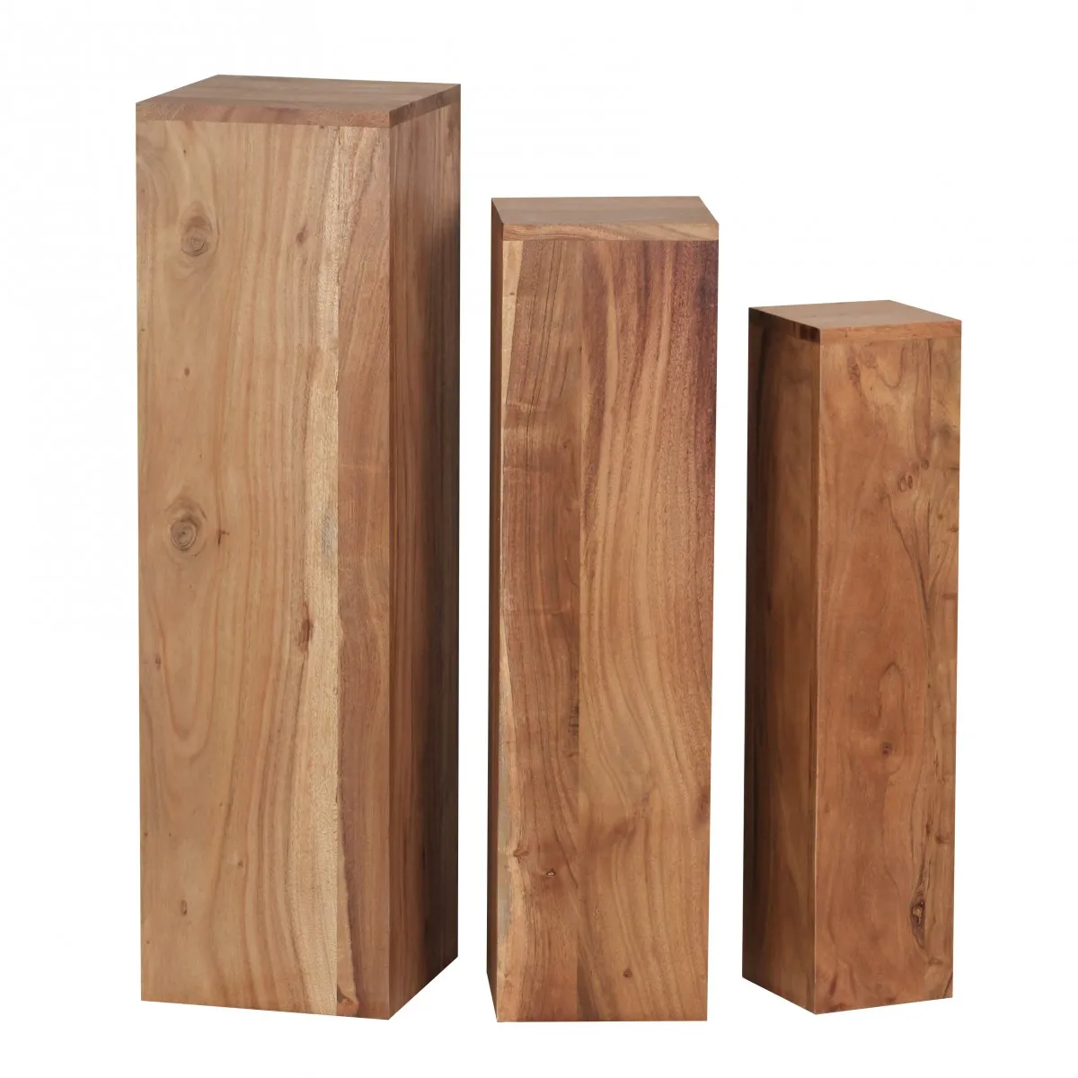 tinkaro eckige Beistelltische DIMITAR Massivholz Akazie 012642 Hochtische Dekosäulen Braun