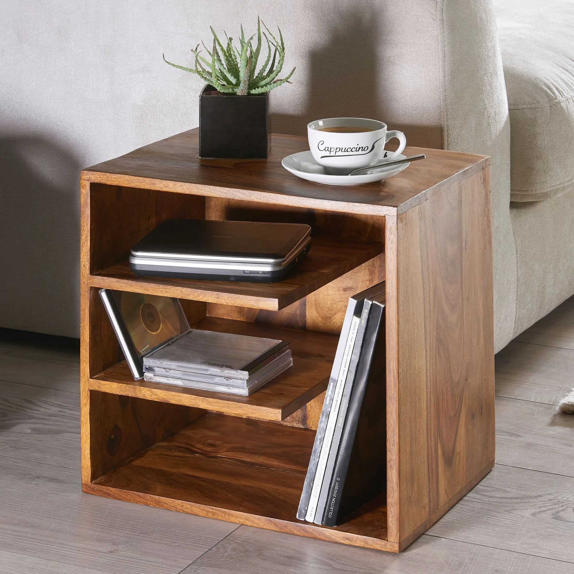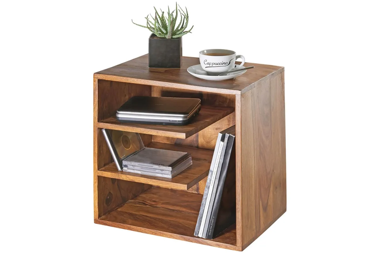 tinkaro eckiger Beistelltisch ARJAN Sheesham Massivholz 012262 Nachttisch Wohnzimmertisch Braun